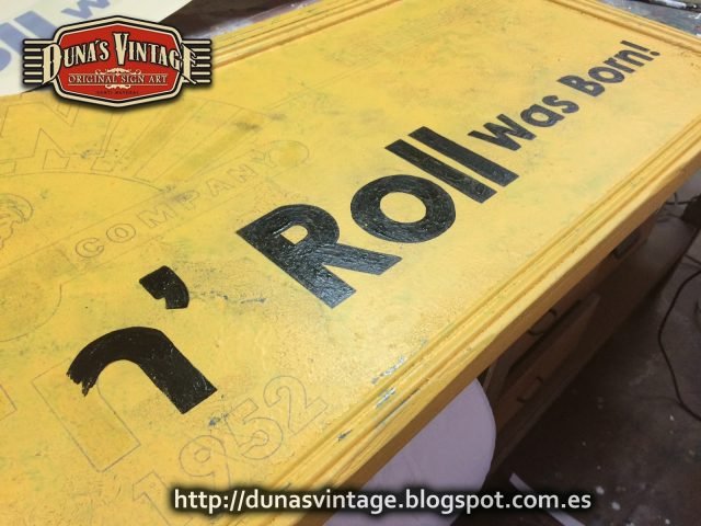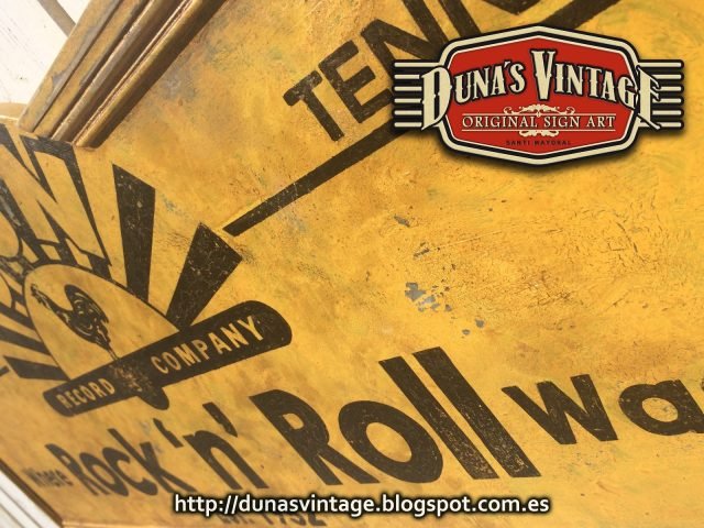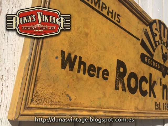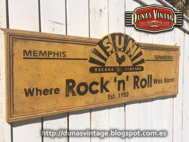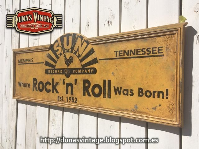 Cartel Rock ‘n’ Roll, Sun Record, sello discográfico de Estados Unidos fundado en 1952 por Sam Phillips en Memphis (Tennessee), Estados Unidos. Entre los músicos que grabaron algún single en la Sun Records merece mencionarse a Elvis Presley, Johnny Cash, Carl Perkins, Roy Orbison, Jerry Lee Lewis, B.B. King, tamaño del cartel 480x1400mm trabajado en madera y pintado a mano.