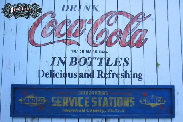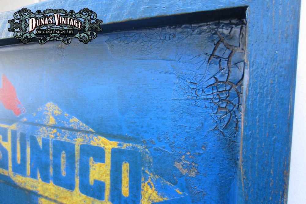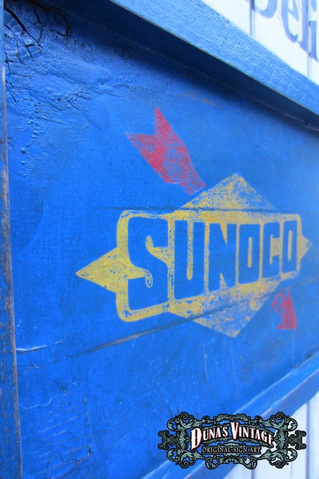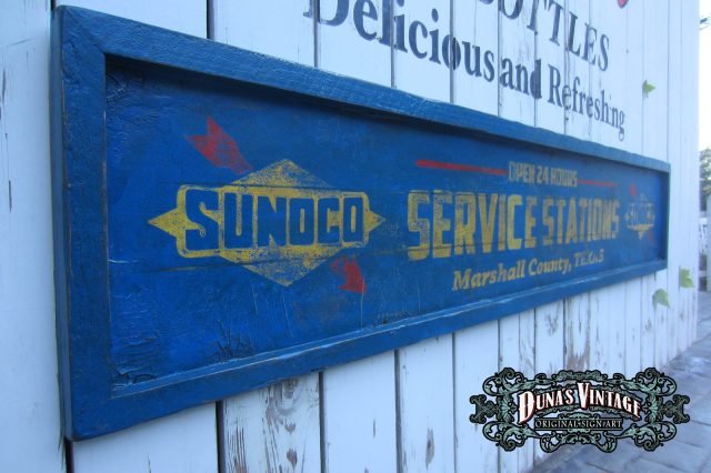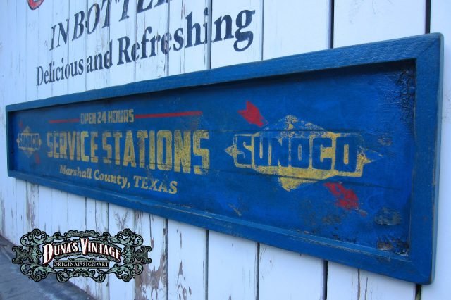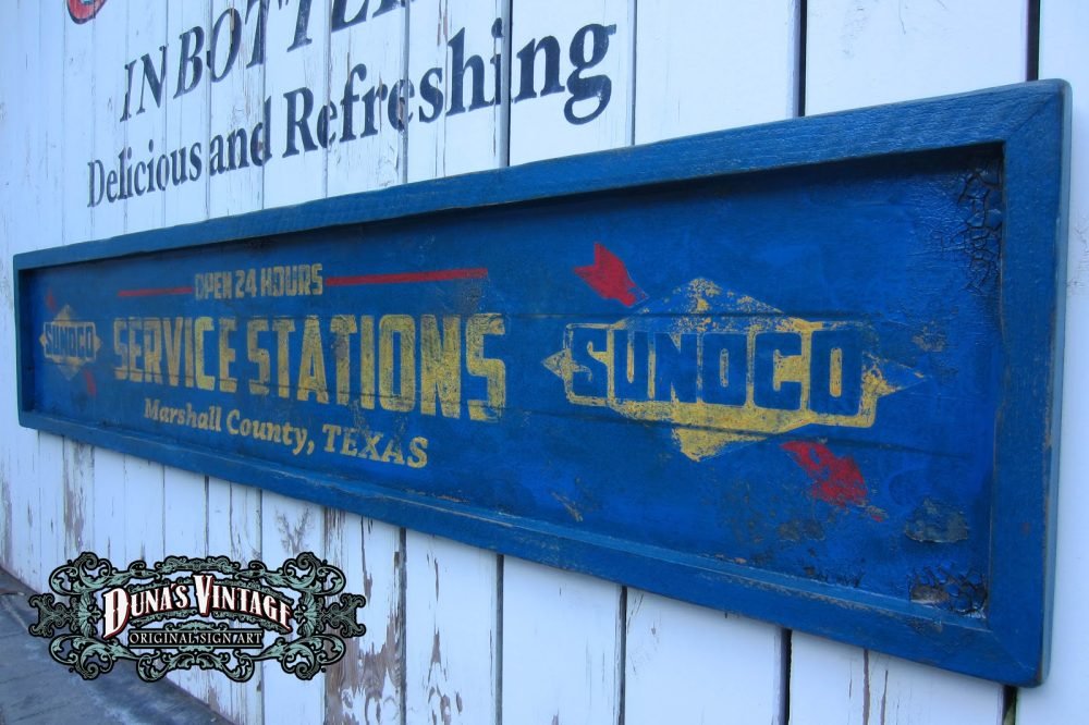 Cartel «SUNOCO SERVICE STATIONS» tamaño 1920X380mm. Este cartel esta tratado con el efecto Retro que Duna´s Vintage emplea en sus carteles.