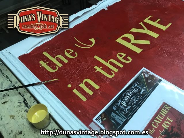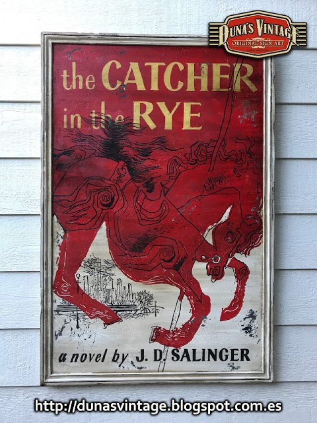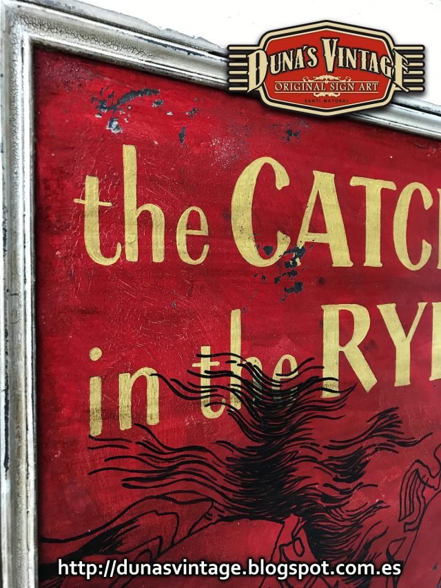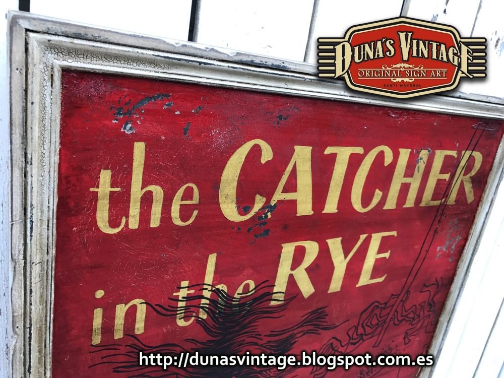 Este cartel es la portada del libro de J.D. Salinger, tamaño 1200x800mm trabajado en madera de 15mm y envejecido con las técnicas que Duna´s Vintage emplea en sus carteles.