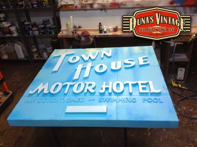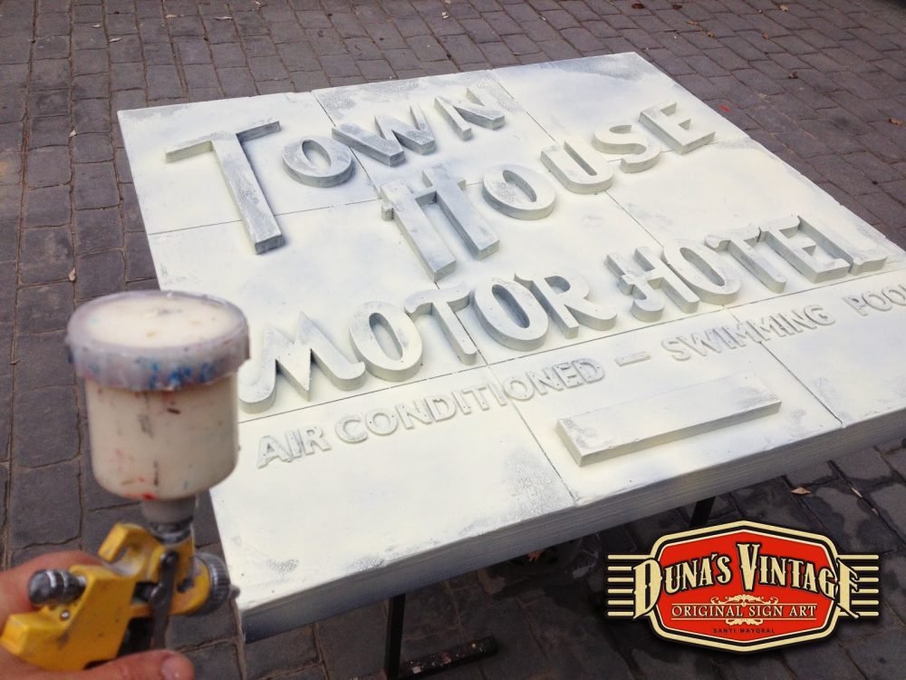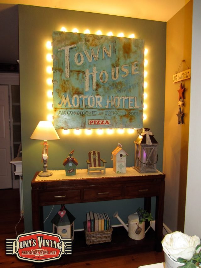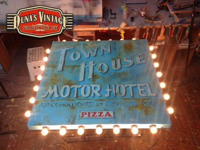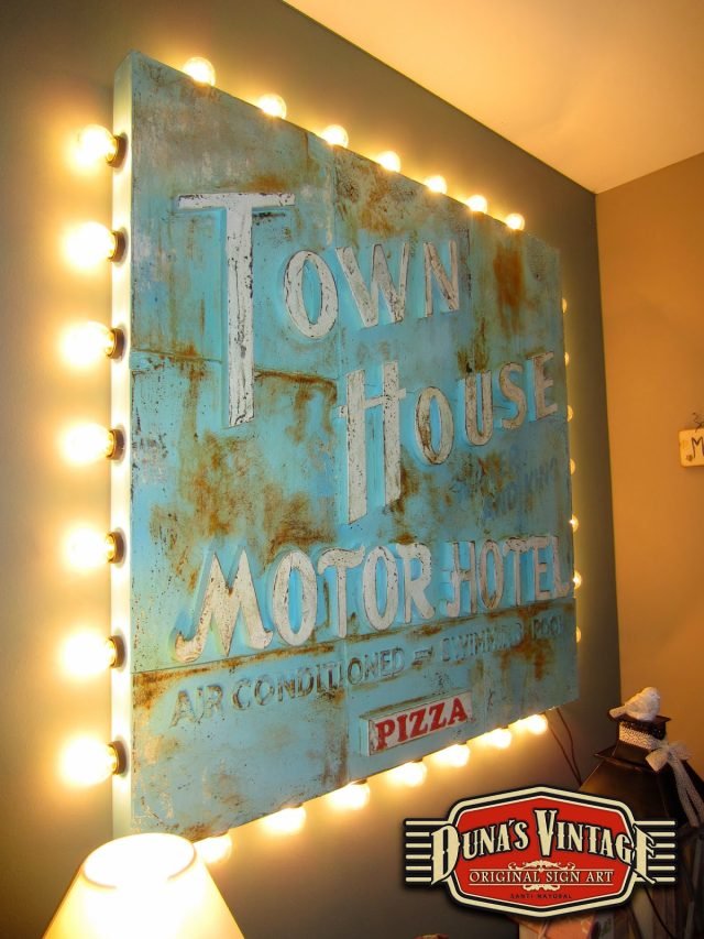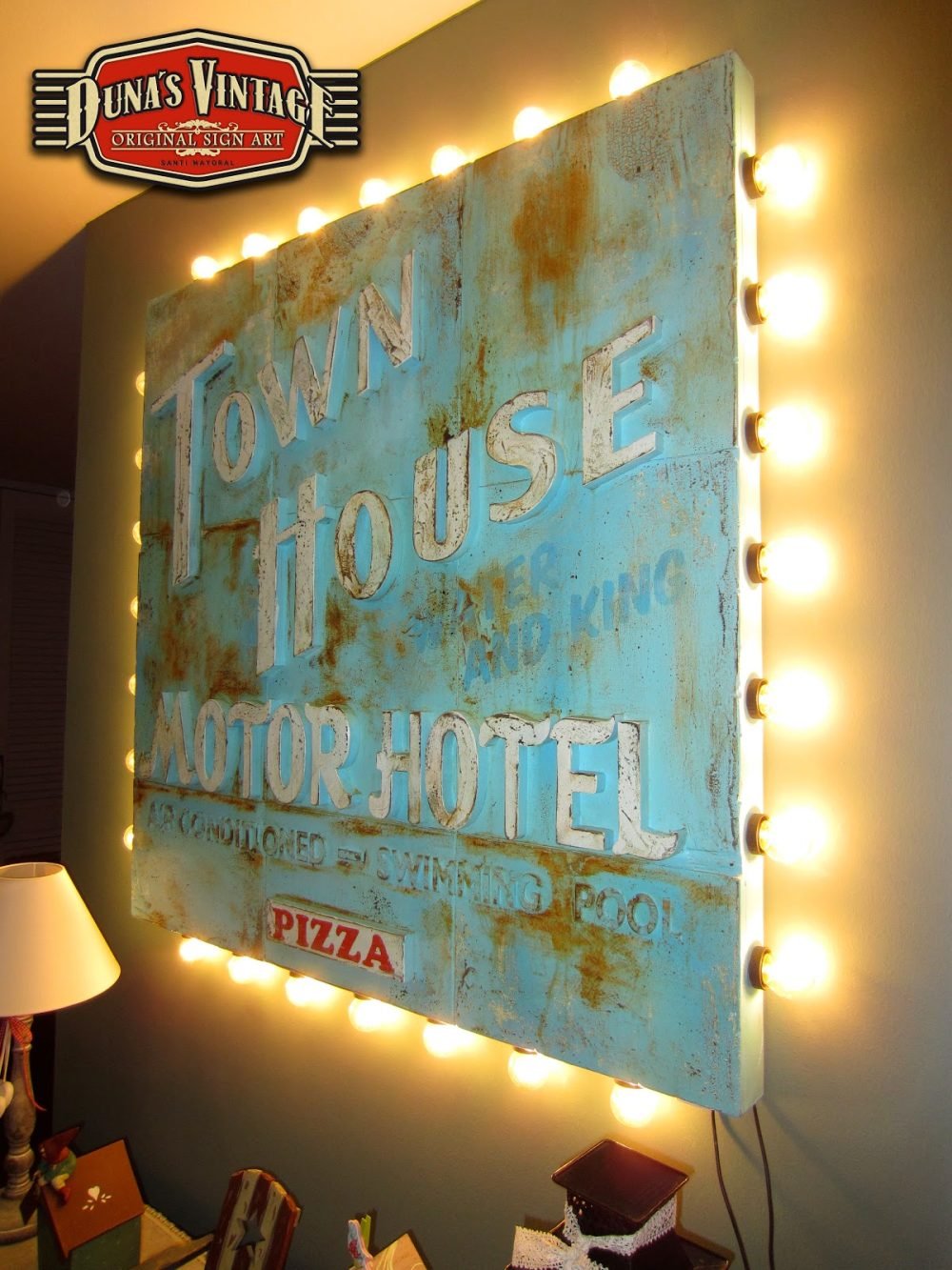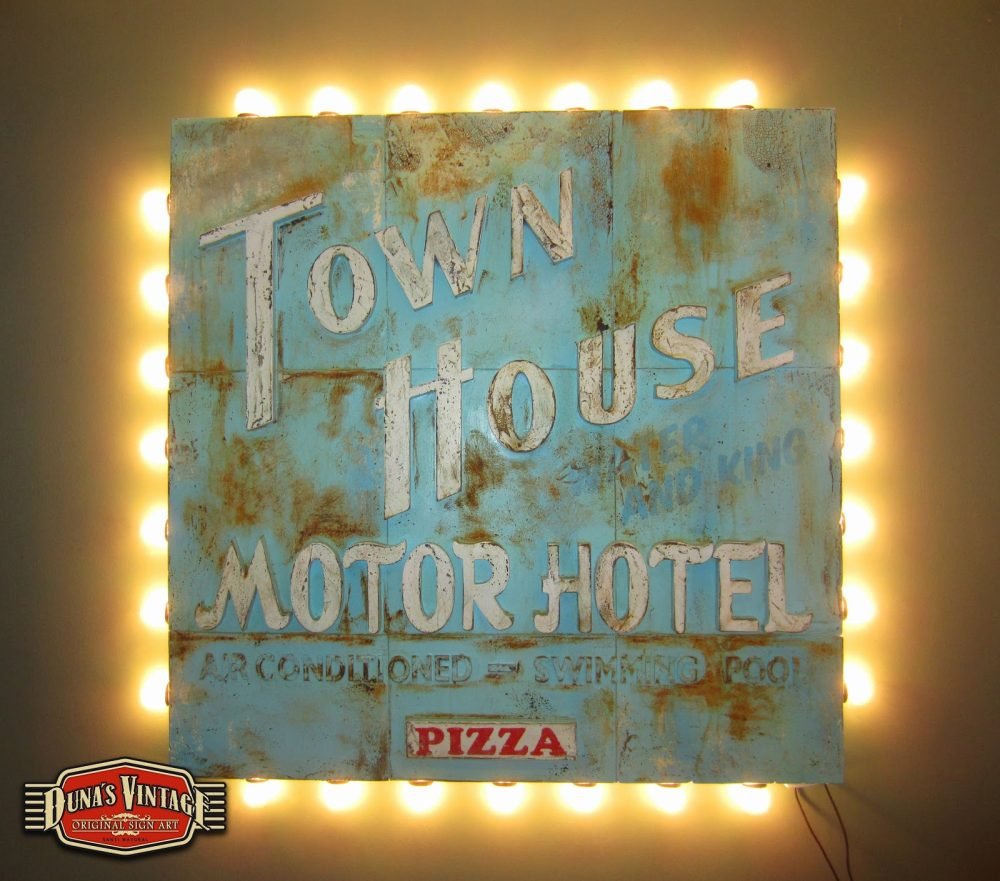 Cartel Town House Motor Hotel, tamaño 1.000 x 1.000 mm: replica del típico cartel que se encontraba en los años 60 y 70 por las carreteras de Estados Unidos.