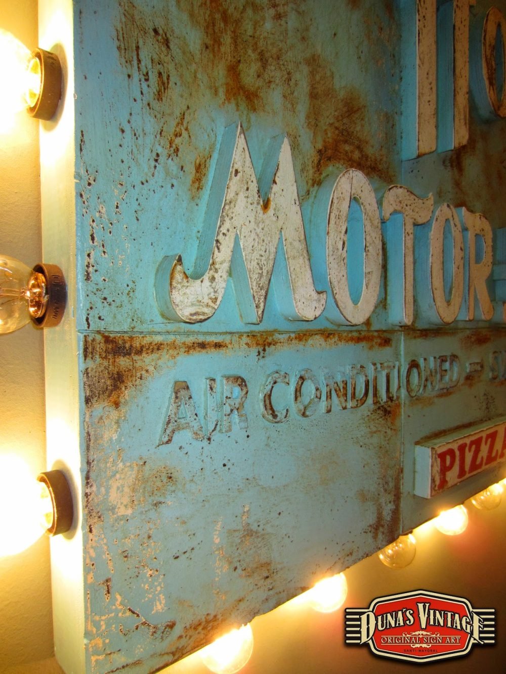 Este cartel es uno de los carteles mas trabajados hasta el día de hoy por Duna´s Vintage. Se ha trabajado hasta el último detalle, tanto a nivel de pintura como la iluminación con bombillas de filamento de 15w, difíciles de encontrar.