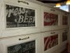 En cada cajón se a pintado una publicidad, pero solo una parte para darle un toque mas moderno como si fuesen retales de carteles antiguos, a continuación os dejo algunas fotos para poder apreciar el efecto que se a logrado.