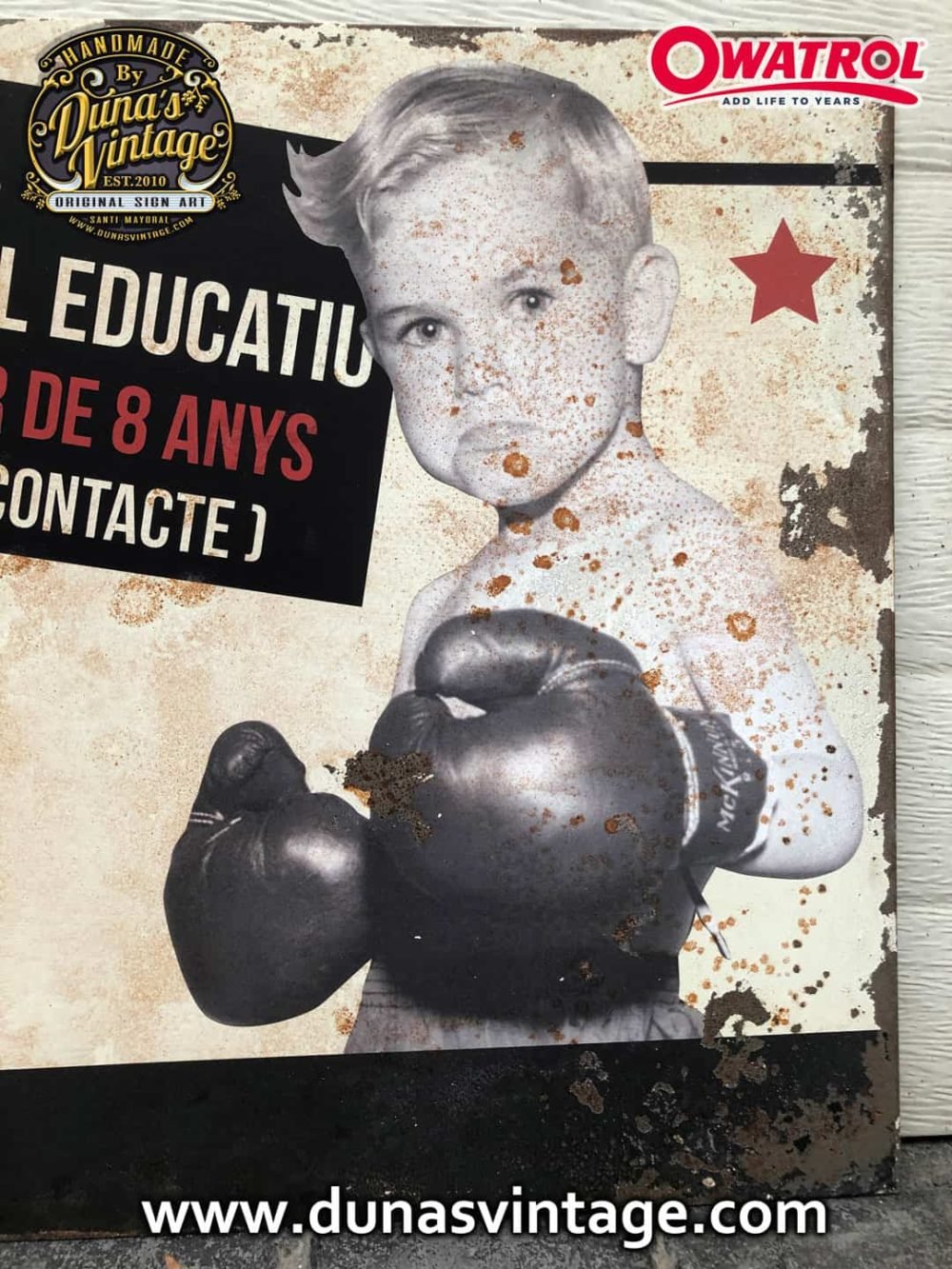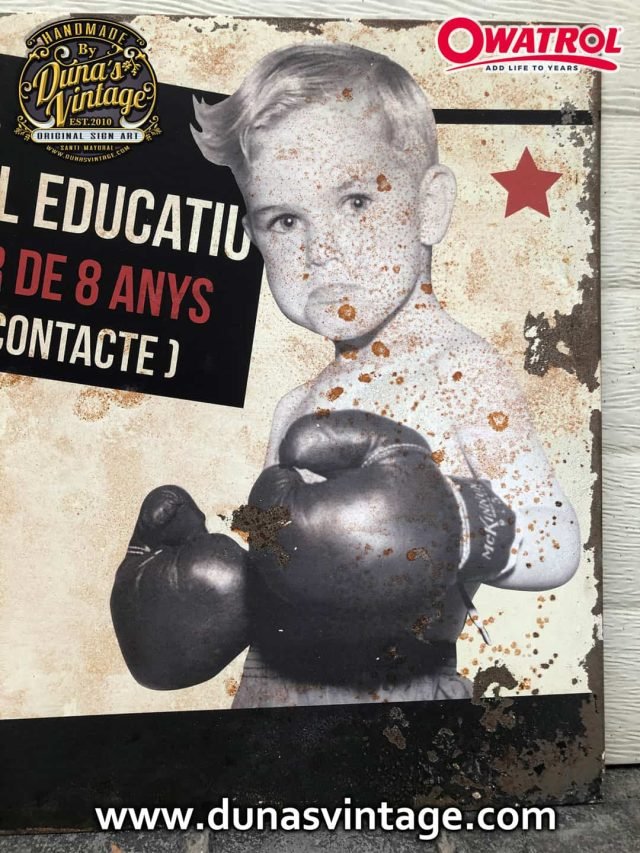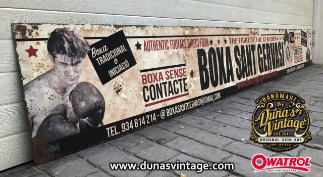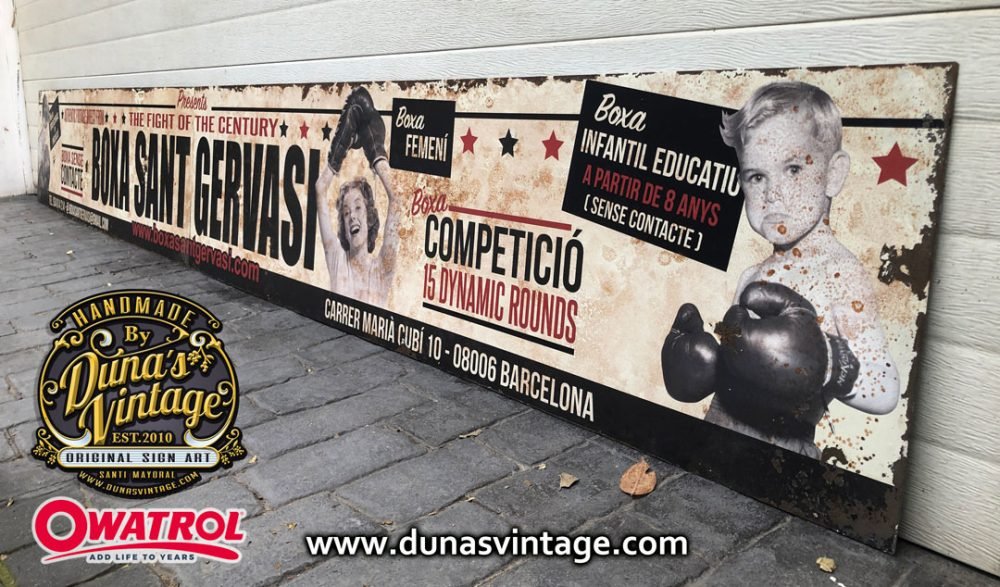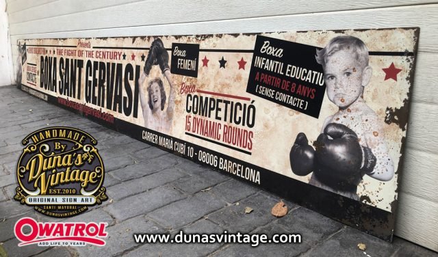 En este trabajo realizado en chapa de hierro de 1,4mm de gran formato tamaño 3600x460mm en dos partes, lo que hemos querido buscar es una imagen con aspecto antiguo oxidado con efecto desgastado por el tiempo al estar al intemperie con activador de Oxido de Owatrol conseguimos este tipo de acabado tan autentico.