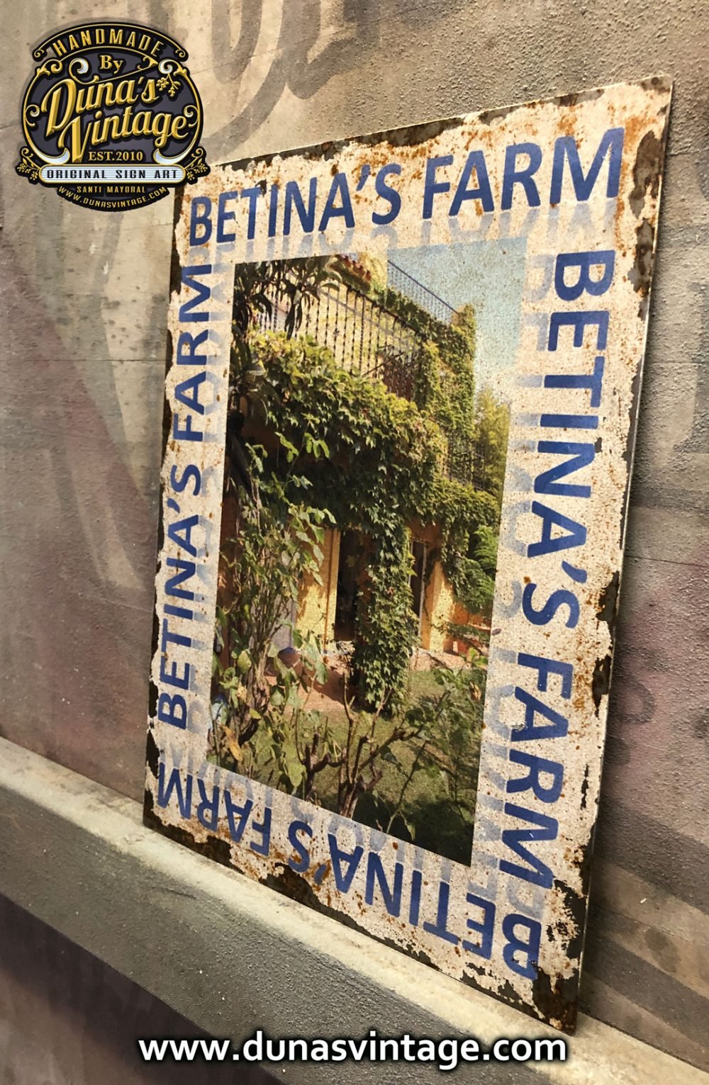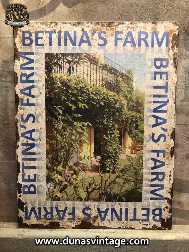 Chapa Metálica con impresión digital y efecto envejecido oxidado tamaño 23x30cm.