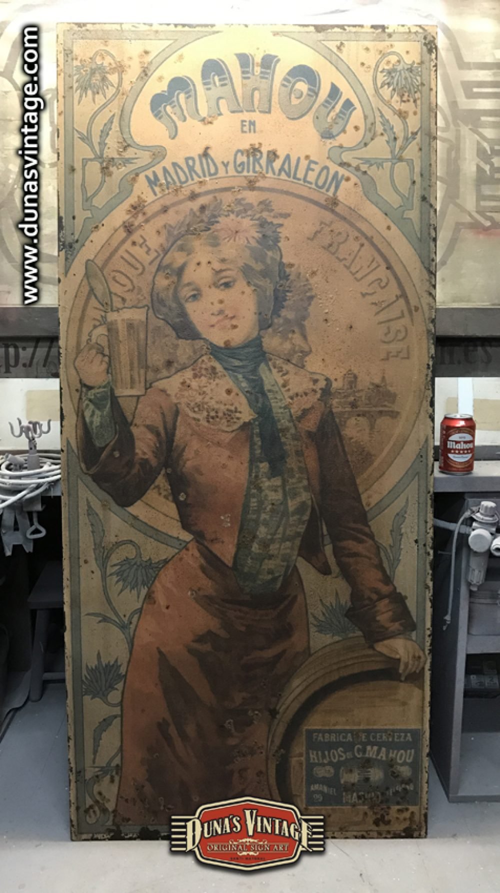 Chapa Metálica de 1,6mm de espesor tamaño 1600x720mm CERVEZAS MAHOU VINTAGE