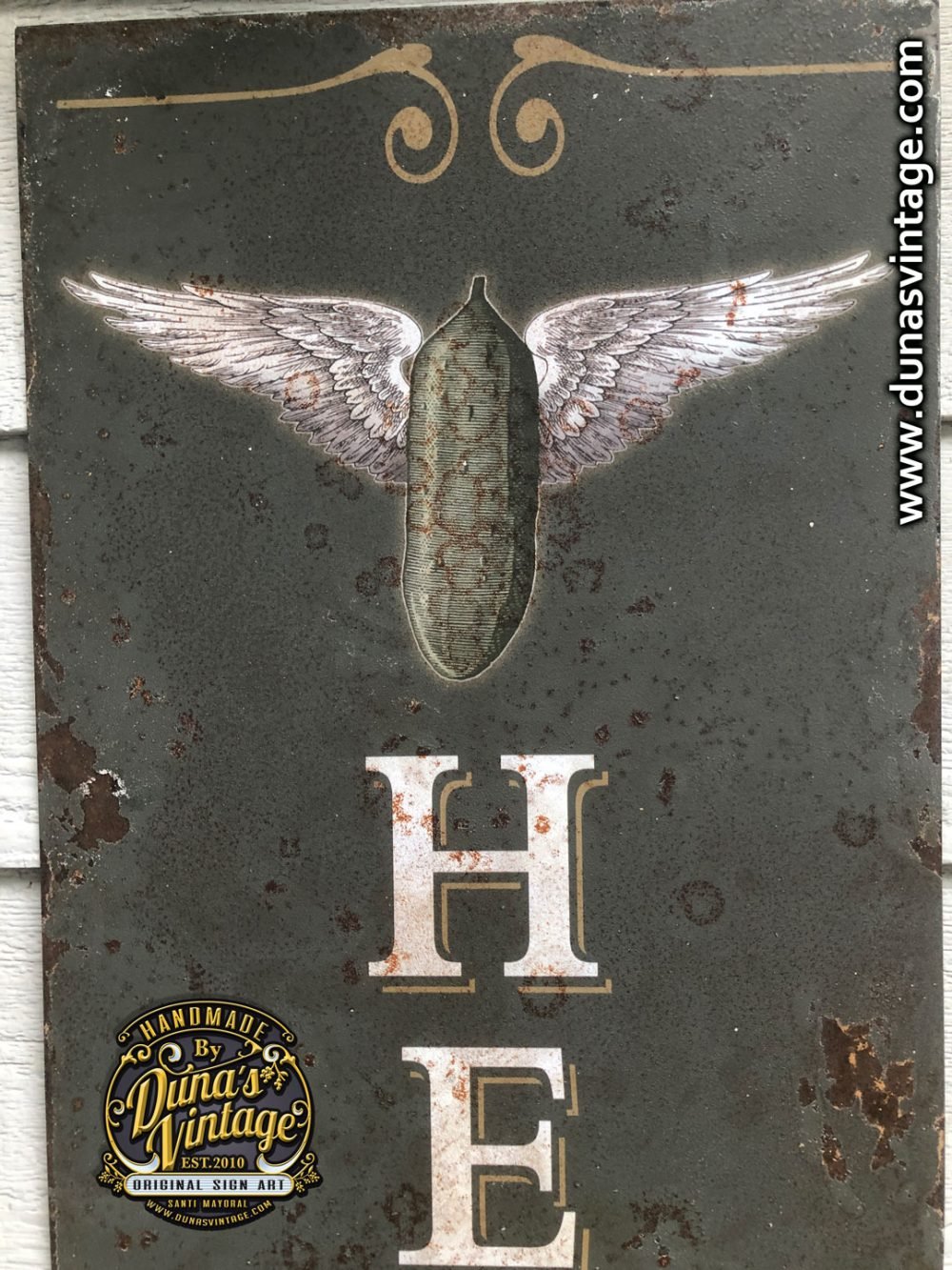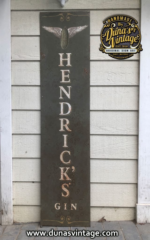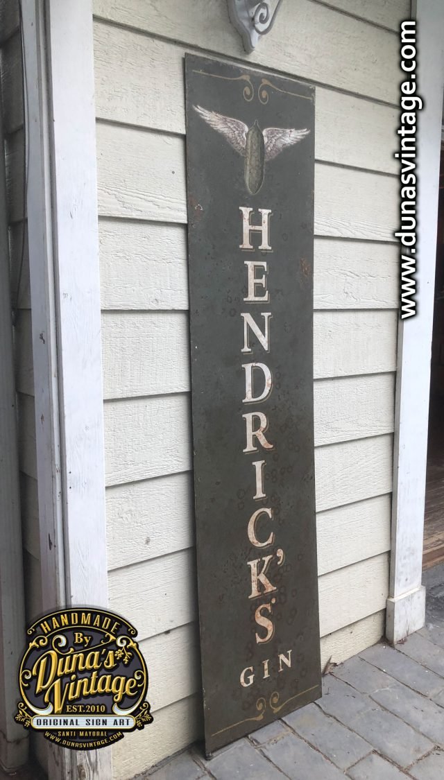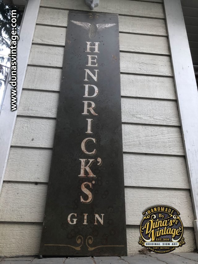 Placa Metálica de 1,4mm de la marca HENDRICK´S GIN en impresión digital con efecto oxido y envejecido.