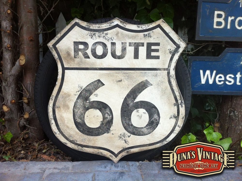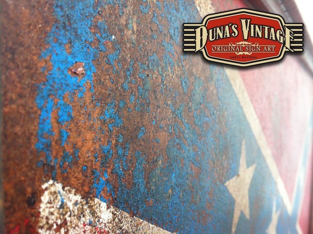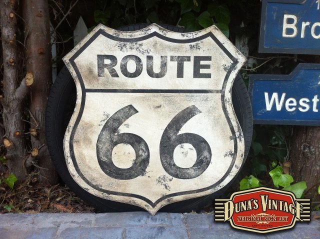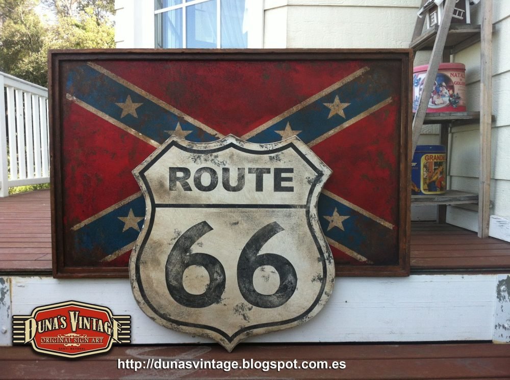 Duna´s Vintage os presenta un encargo para el nuevo garaje de un amigo, La placa de ROUTE 66 su tamaño es de 600x600mm y la CONFEDERATE FLAG hace 1000x650mm todo con el acabado que duna´s Vintage hace en sus trabajos.