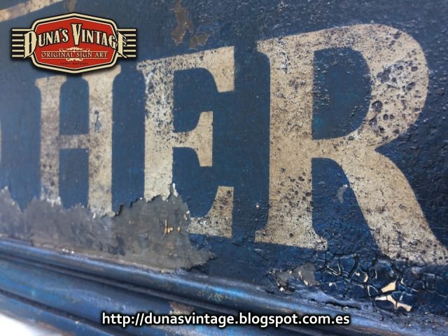 Replica cartel de taller de los años 50, tamaño 600x500mm trabajado en madera y pintado a mano.