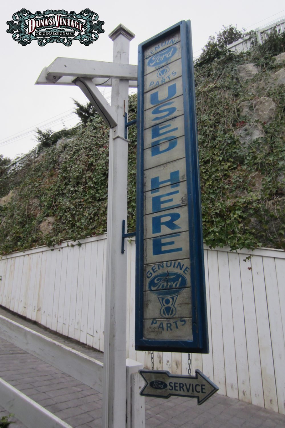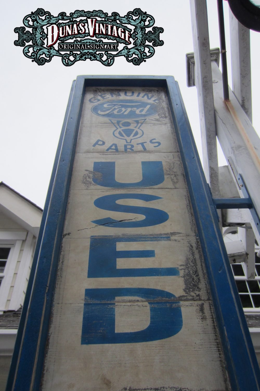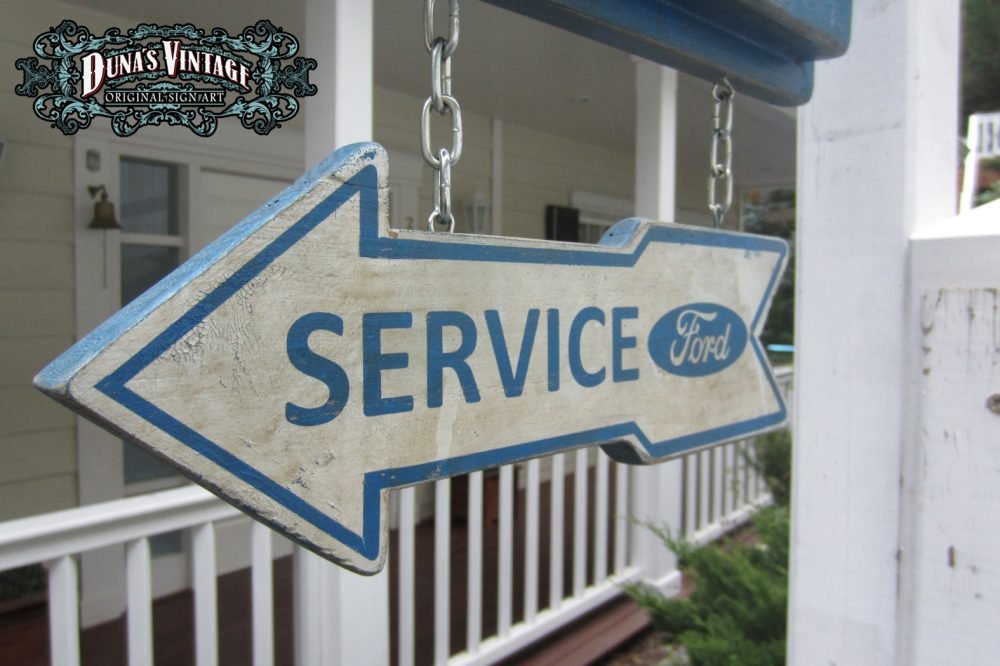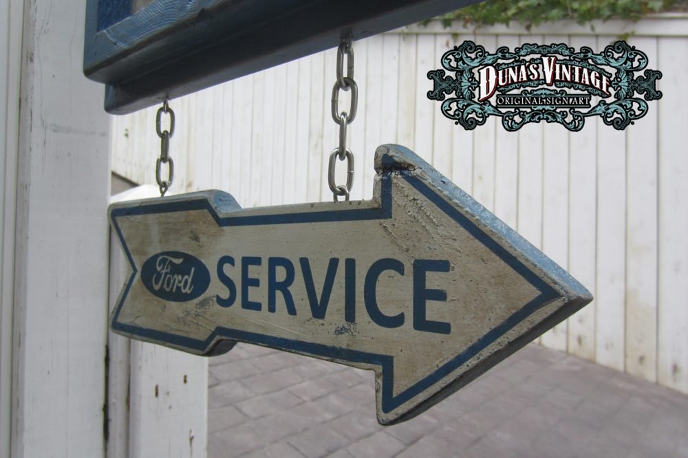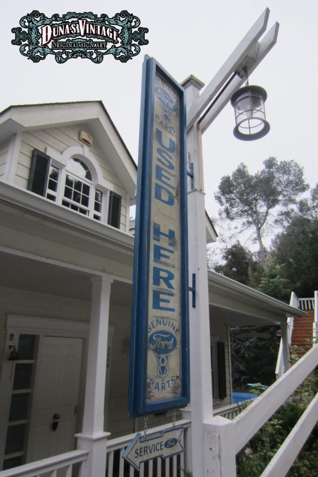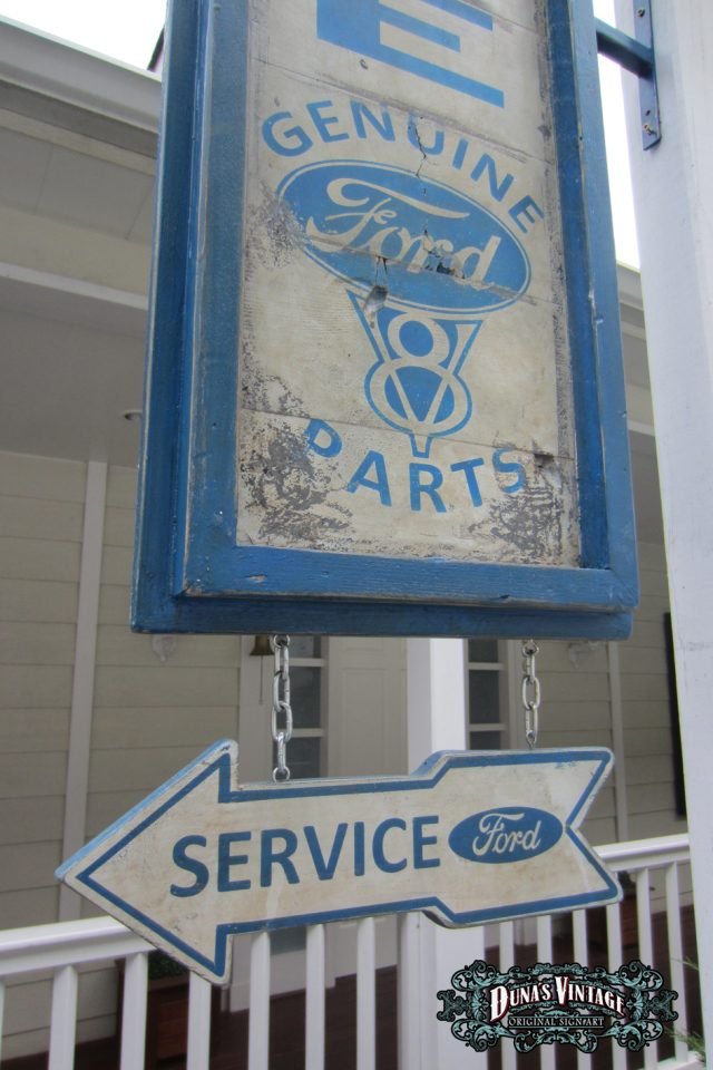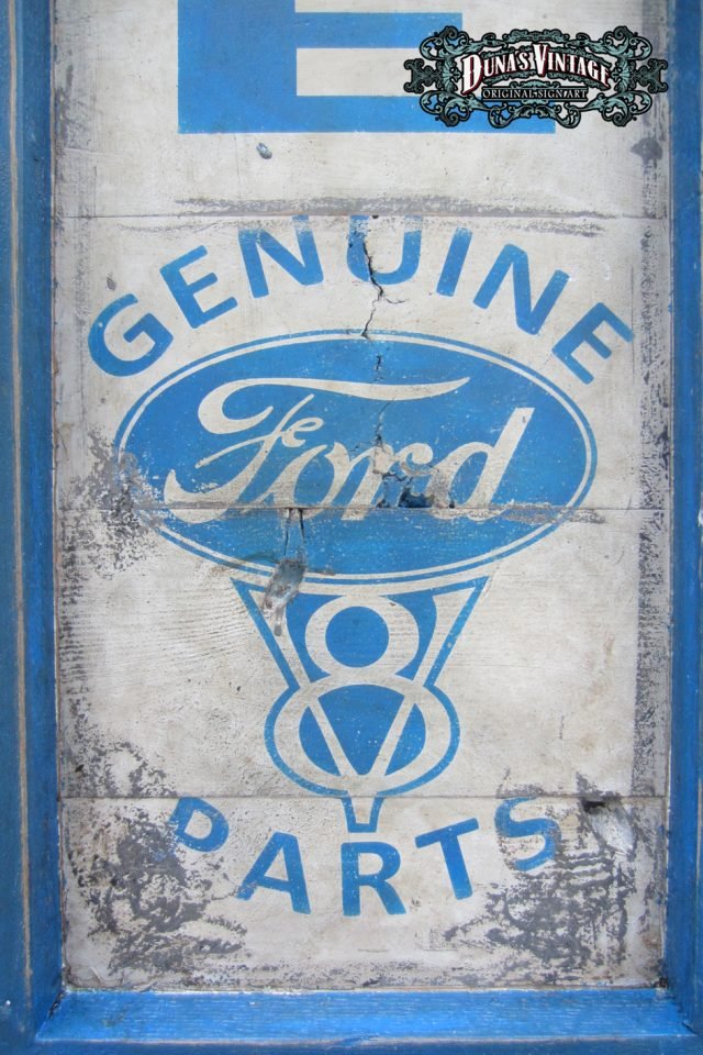 Cartel «Ford Genuine Parts 55´» Replica cartel gasolinera de Detroit del 1955, tamaño 2000x400mm. Este cartel esta tratado con el efecto Retro que Duna´s Vintage emplea en sus carteles pintados a mano.