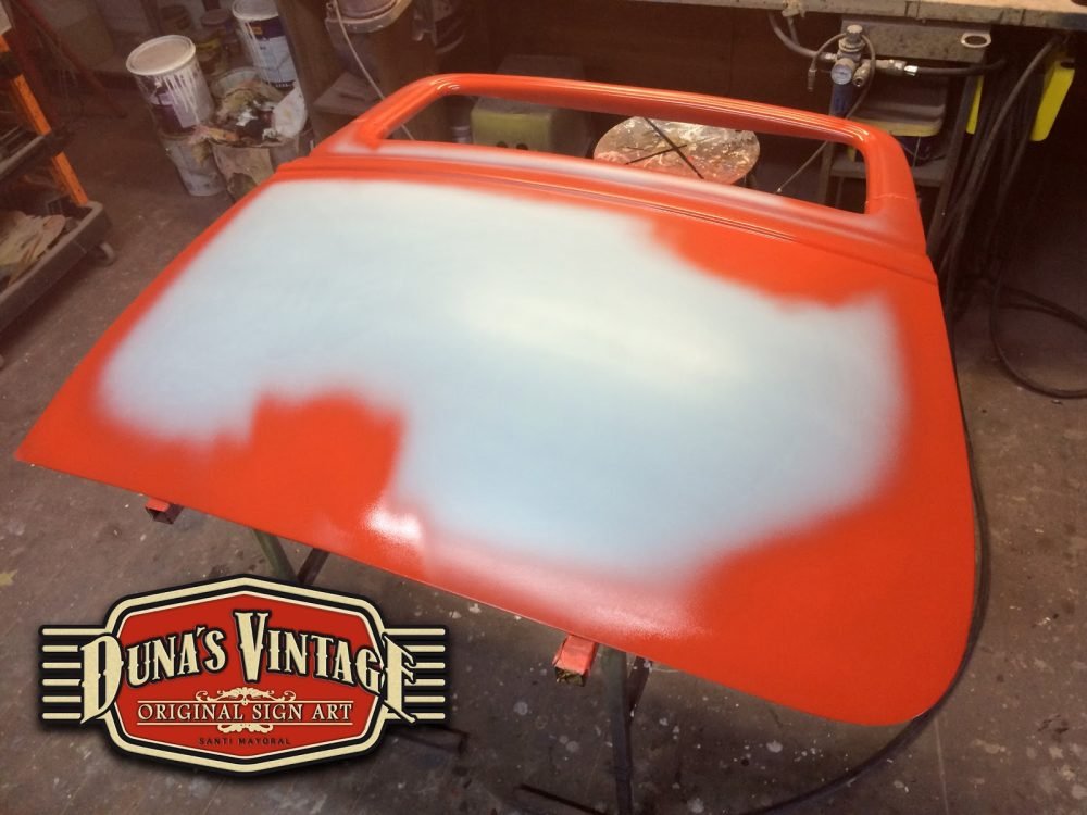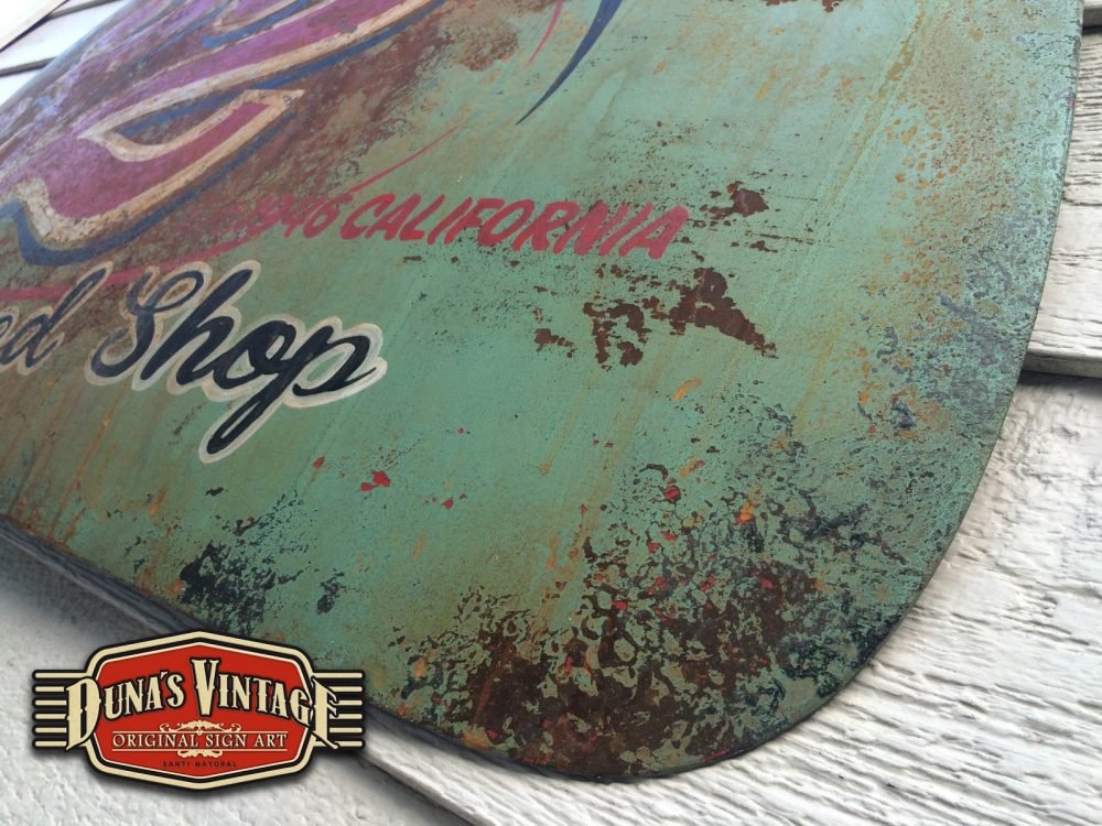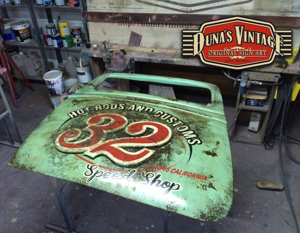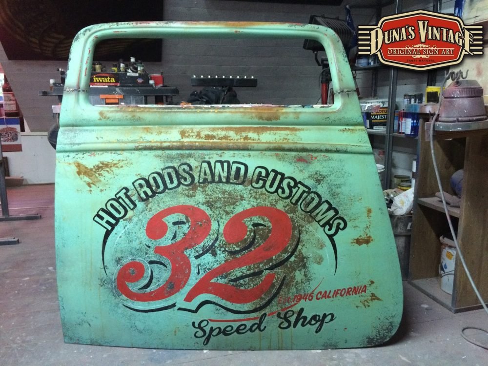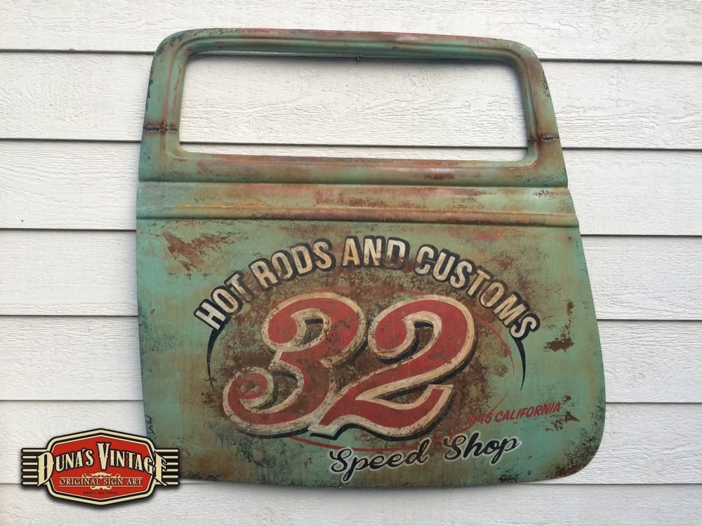 Duna´s Vintage os presenta su ultimo trabajo realizado sobre una puerta de un Ford del 33, la base es una puerta fabricada en fibra de vidrio por la empresa www.rodlineinternational.com como podéis apreciar en las fotos el efecto que se a querido conseguir es el de una puerta de hierro oxidada por los años, podría ser la típica puerta que podríamos encontrar en un granero en estados unidos. Os dejo el paso a paso de cómo se a pintado la puerta son muchas capas de pintura y horas de trabajo para llegar a conseguir el efecto deseado. A parte se le a colocado un soporte y luz trasera para colgar en la pared y darle un toque muy autentico para tu Garaje, Bar, o donde quieras tener un toque muy autentico.