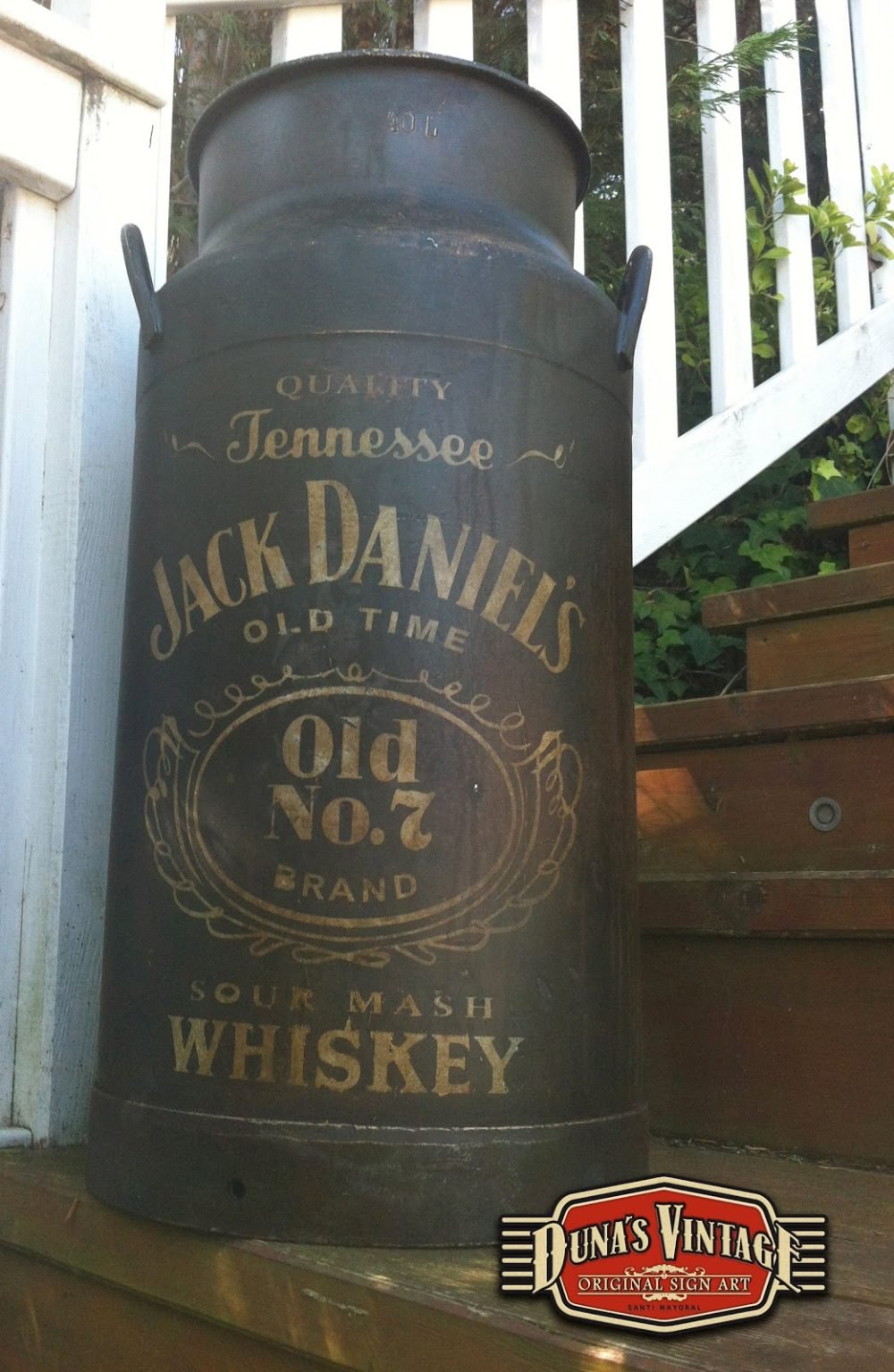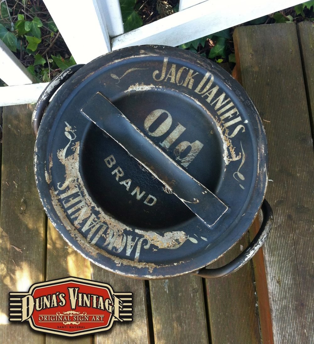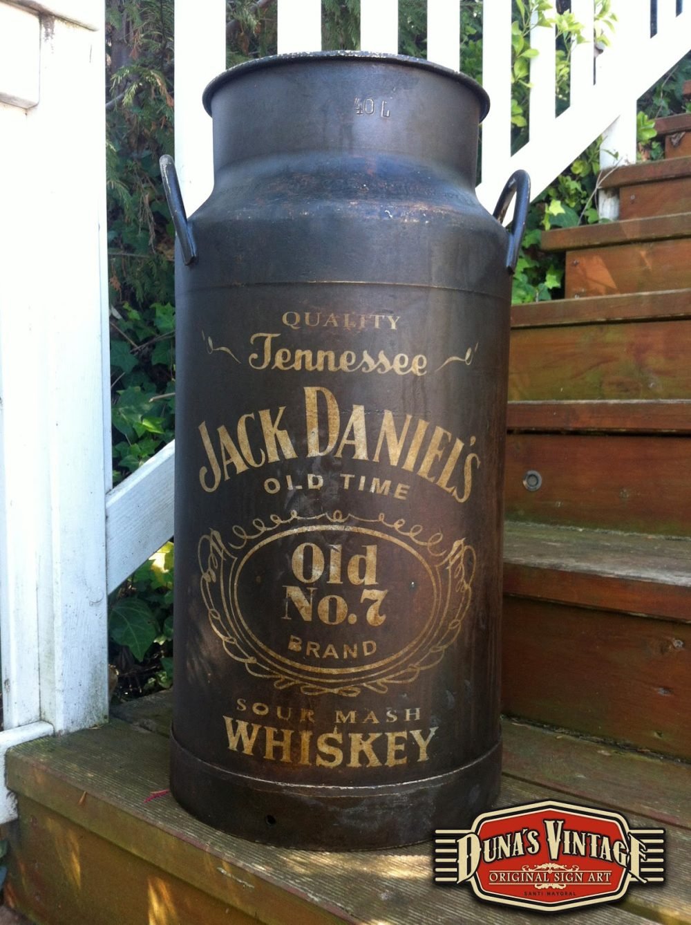 Lechera 40L. Pintada de Jack Daniel´s esta lechera es de aluminio, primero se a oxidado con unos productos especiales y luego se a pintado de color negro y texto blanco y se a activado la oxidación para darle este aspecto. Es un proceso lento pero el acabado final es muy autentico. For Sale 200€
