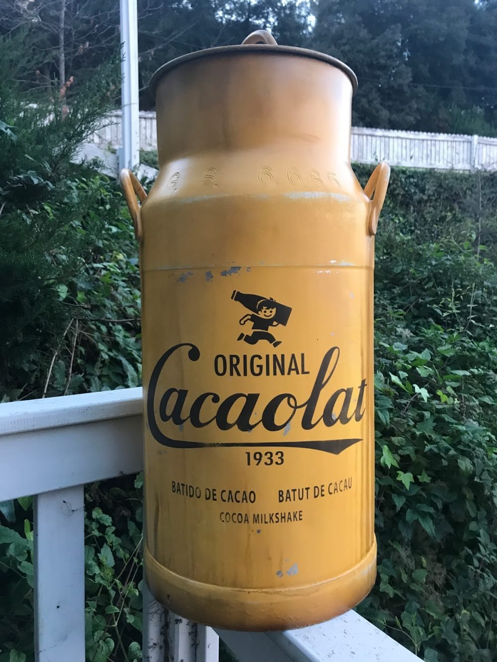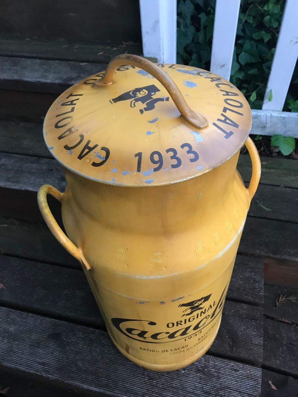Lechera de Aluminio de 40L TAMAÑO 700X310mm, esta lechera esta pintada con la imagen de Cacaolat y envejecida para darle el efecto retro. For sale 250€