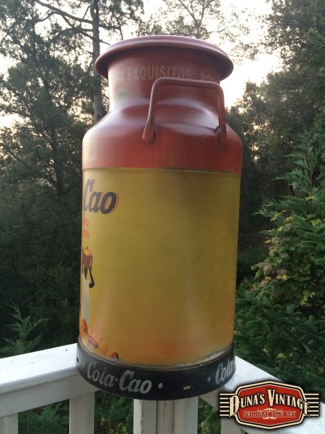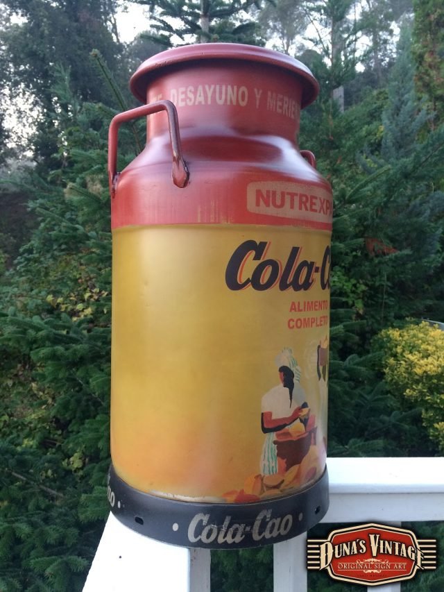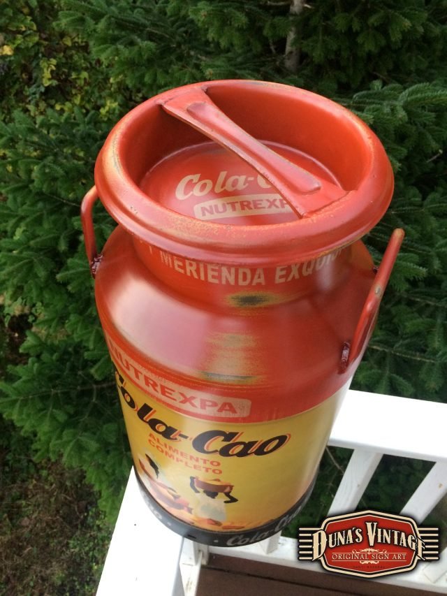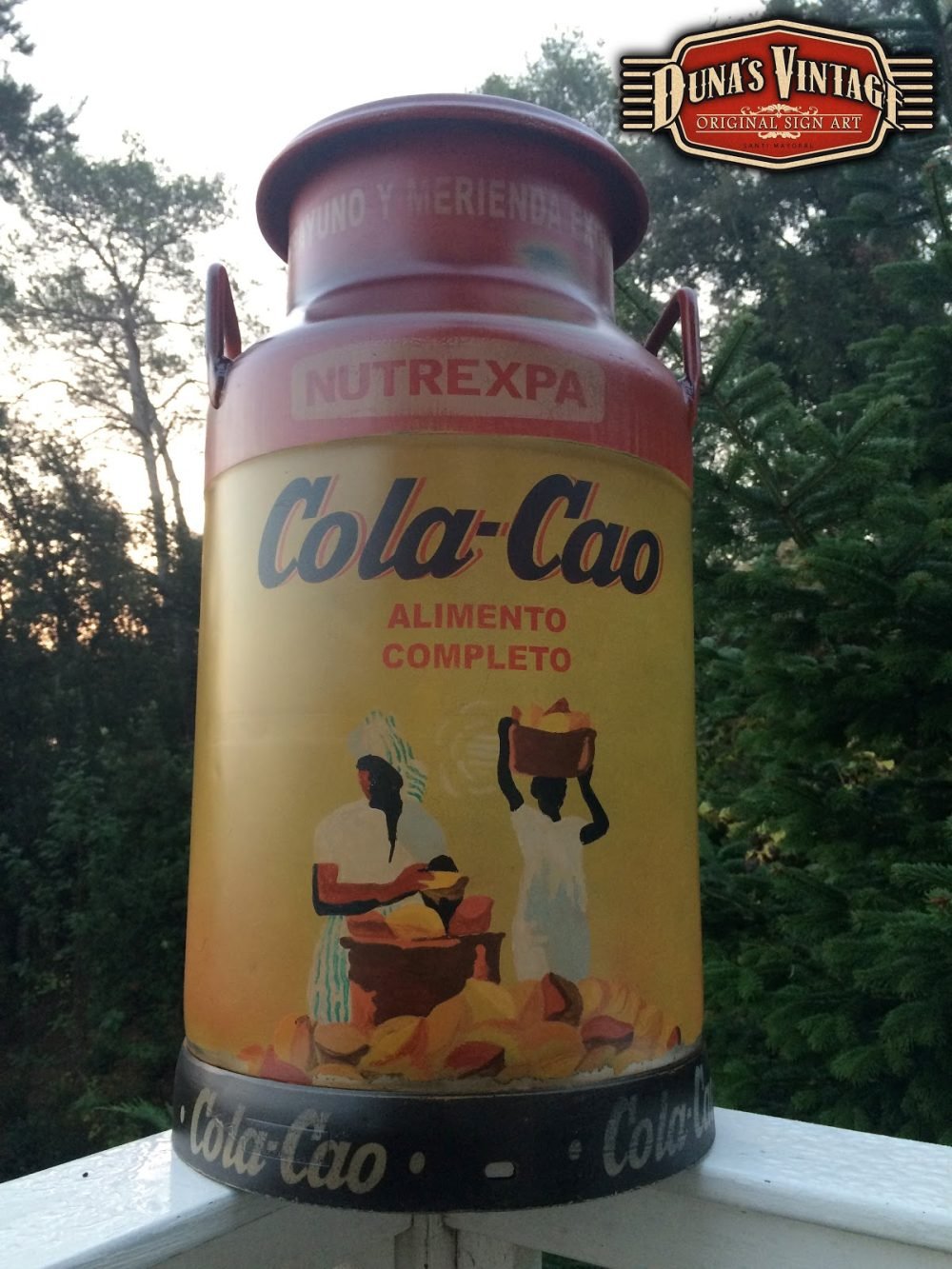 Os acordáis de la imagen del bote de Cola-Cao de cuando éramos pequeños? Pues Duna´s Vintage os presenta una lechera pintada con la imagen de la época y dándole el efecto que Duna´s Vintage emplea en sus trabajos. For sale 250€