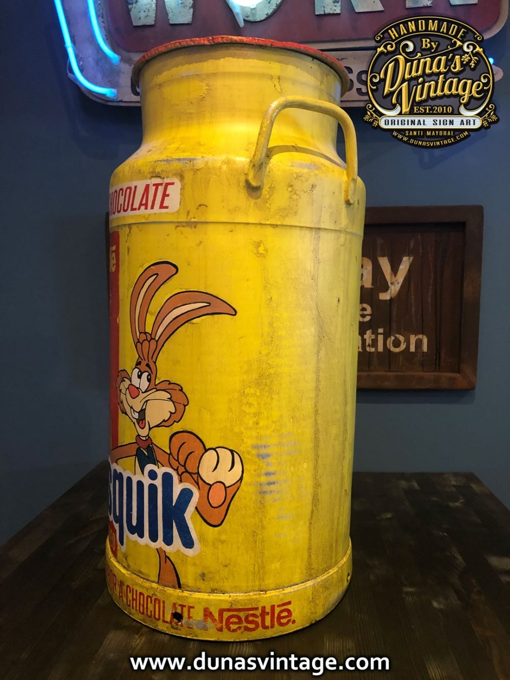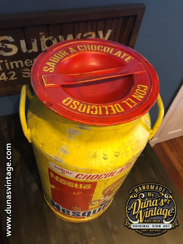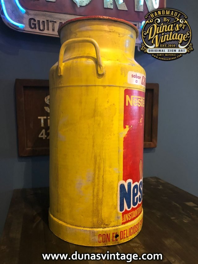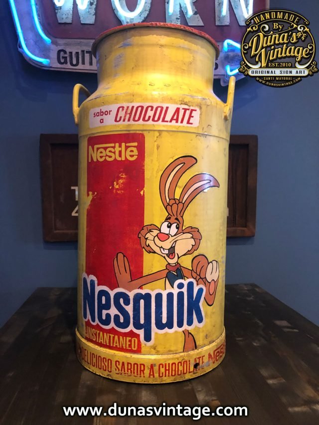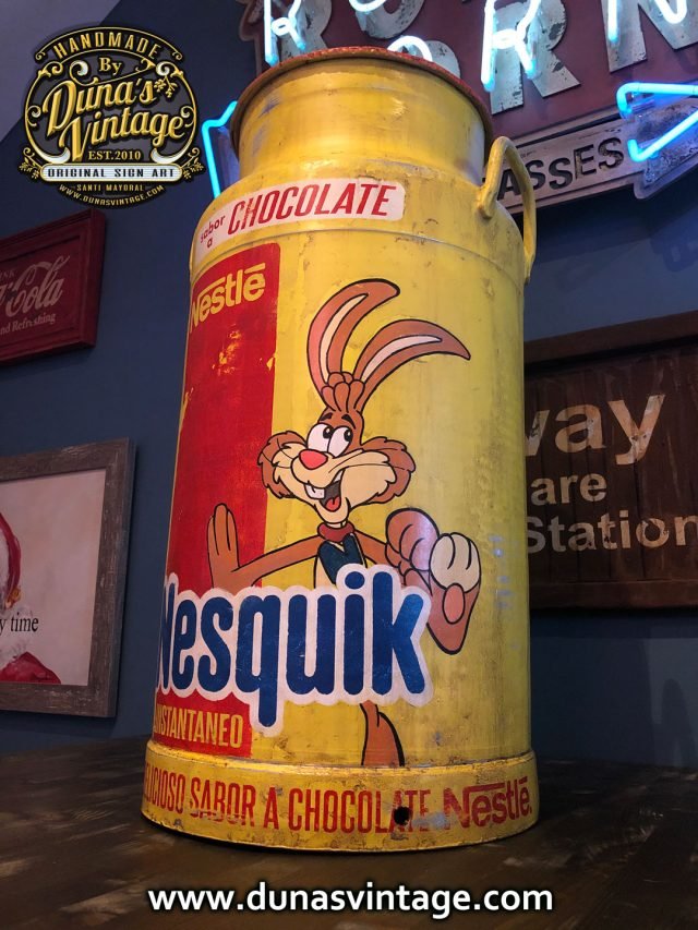 Lechera de Aluminio de 40L. Personalizada de la marca NESQUICK esta es de las primeras imagenes que Nesquik en 1973 utilizo el conejo llamado Quicky.