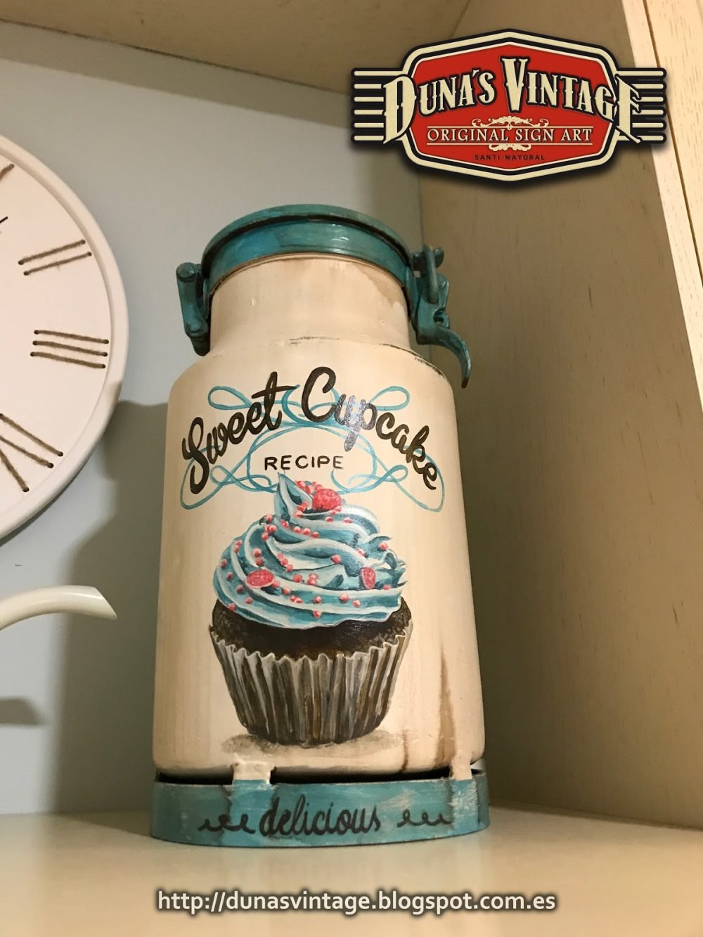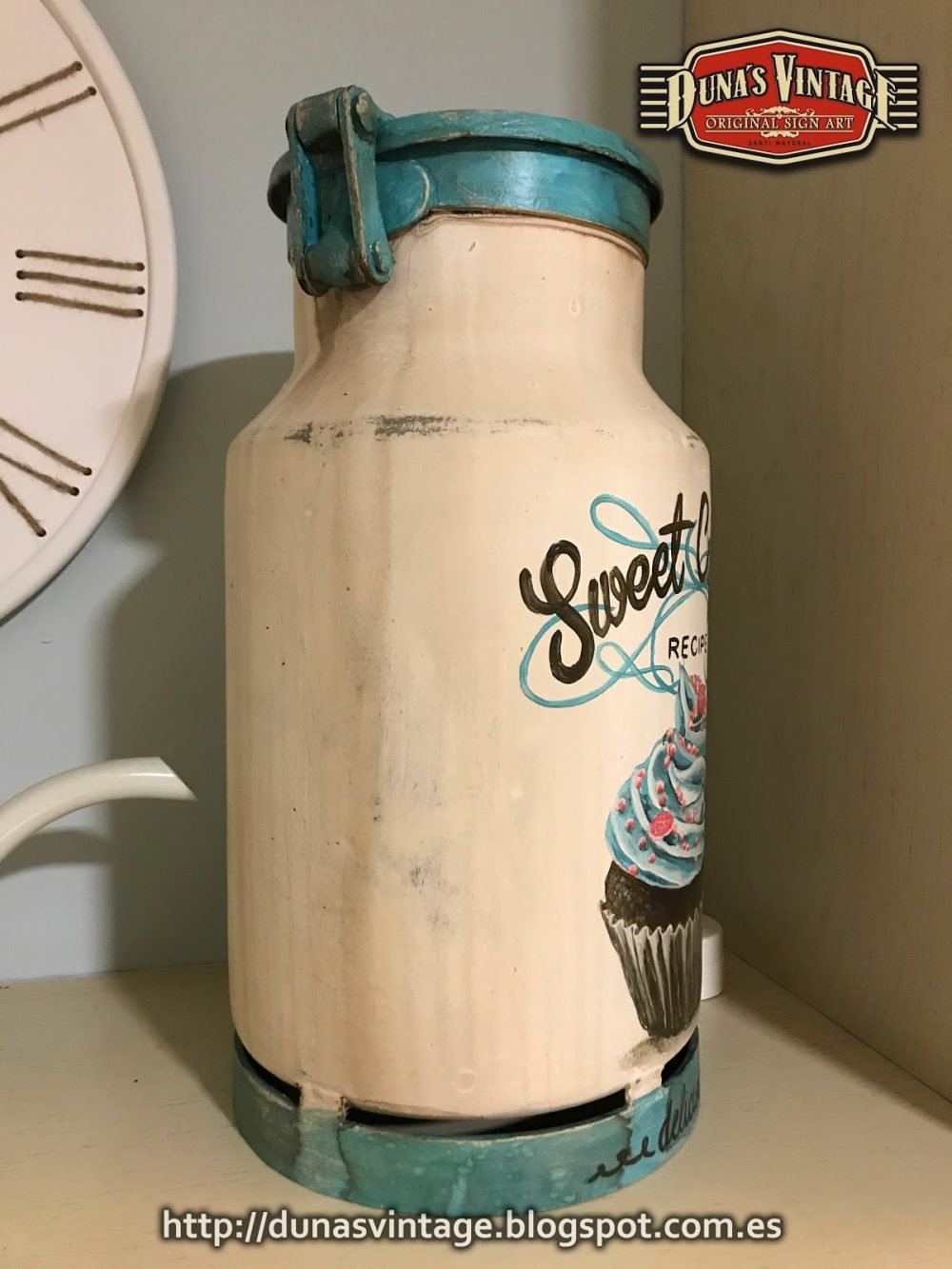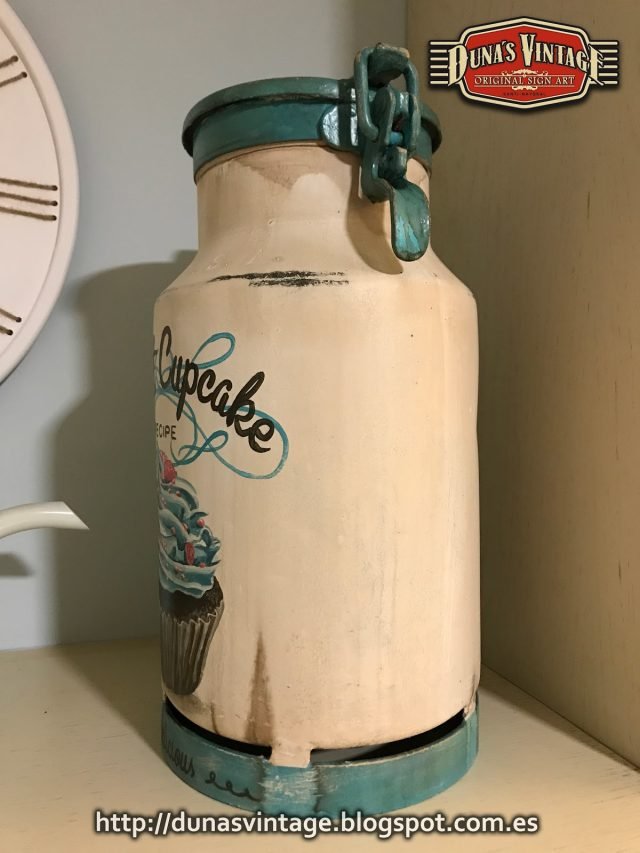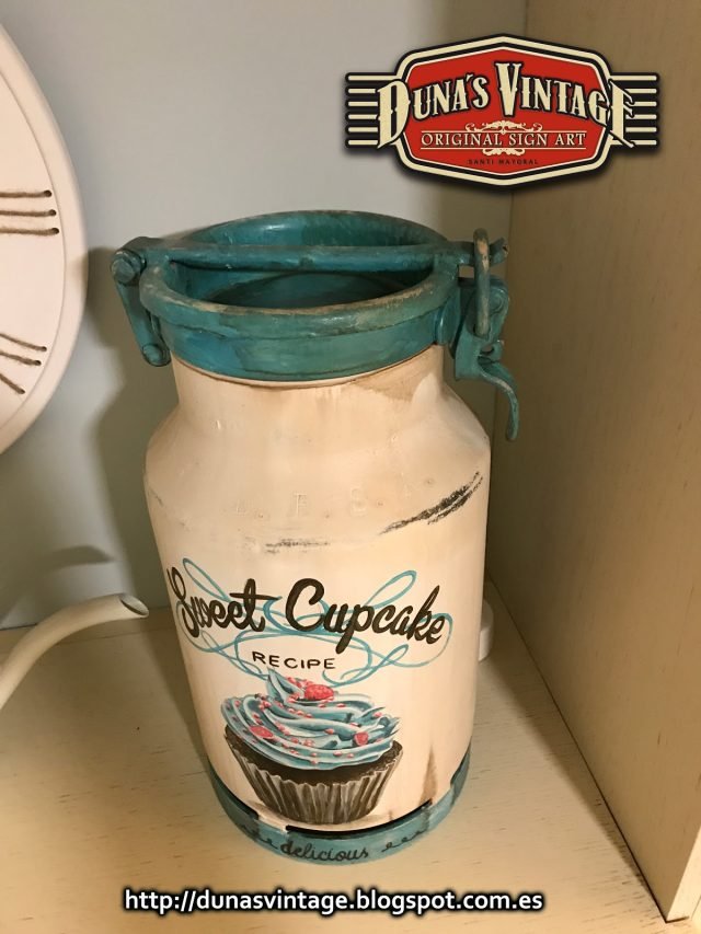 Lechera Sweet Cupcake pequeña de Aluminio de 10 Litros tamaño 360x220mm ideal para decorar en casa, Duna´s Vintage.