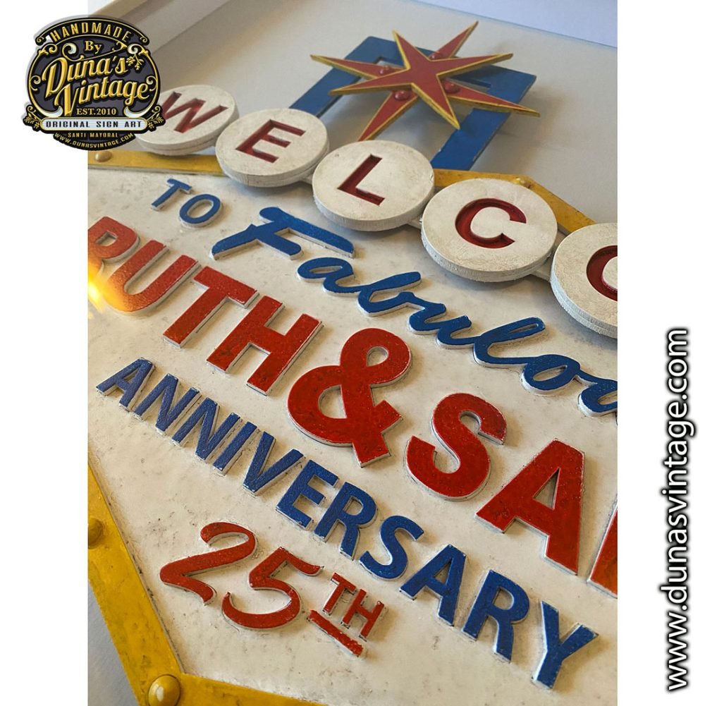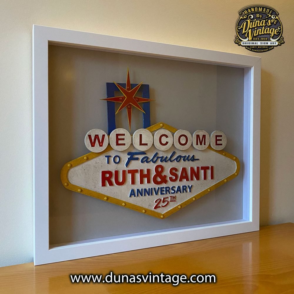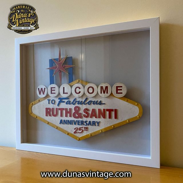 Aquí os dejo otra variación del cartel Welcome Las Vegas esta vez en tamaño mini tamaño 50x40cm para celebras Las Bodas de Plata enmarcado con moldura blanca. Otra opción para regalar en un día tan especial.