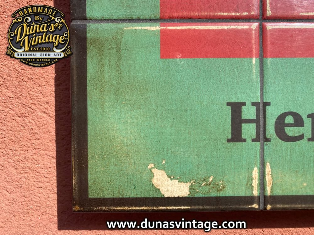 Os presento una nueva línea de carteles pintados sobre azulejos, en este caso es sobre azulejo blanco de 15x15cm impreso y acabado envejecido para darle el toque que Duna´s Vintage da en sus trabajos. Tamaño del cartel 75x45cm, en venta en la tienda de Duna´s Vintage.