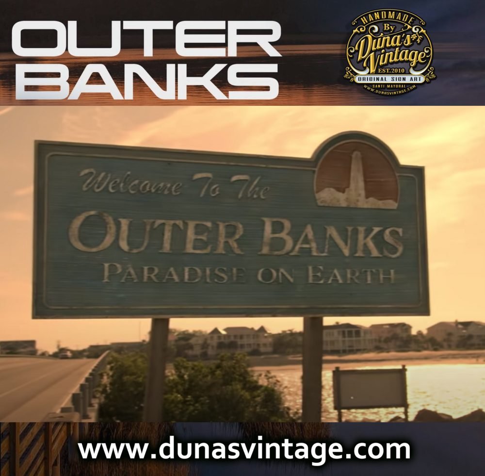 Aquí os dejo un nuevo cartel de la serie de Netflix Outer Banks, este cartel se ha trabajado en madera con relieve, dándole una textura de relieve texturizado en el interior del cartel para darle un aire mas auténtico, como podéis apreciar en la foto el cartel se ha sacado de una captura de la serie. El tamaño del cartel es de 965x435mm lo encontrarás en la tienda de Duna´s Vintage. https://dunasvintage.com/stock-carteles/