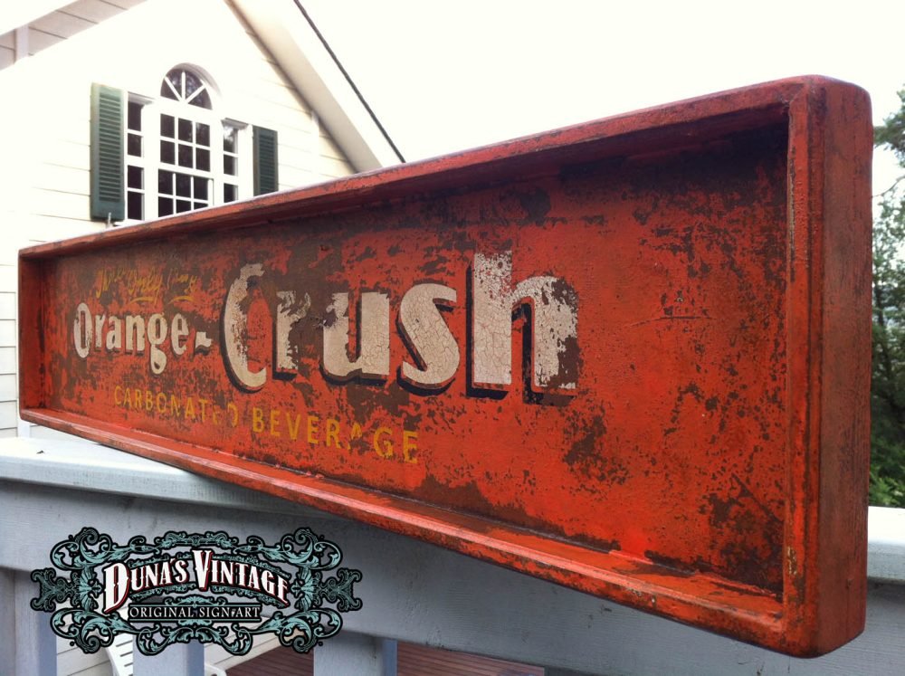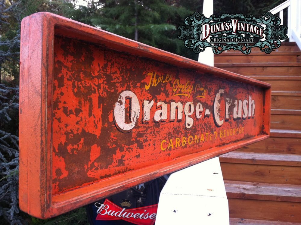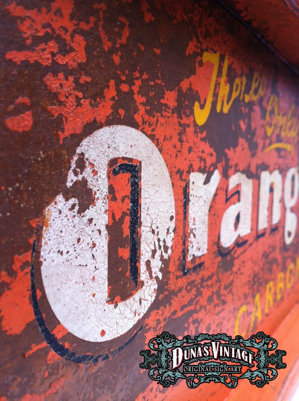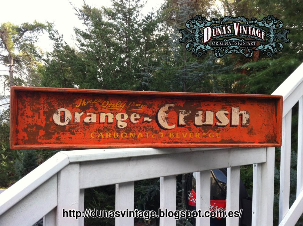 Cartel «Orange Crush» tamaño 1013x210mm. Este cartel esta tratado con el efecto Retro que Duna´s Vintage emplea en sus carteles pintados a mano.