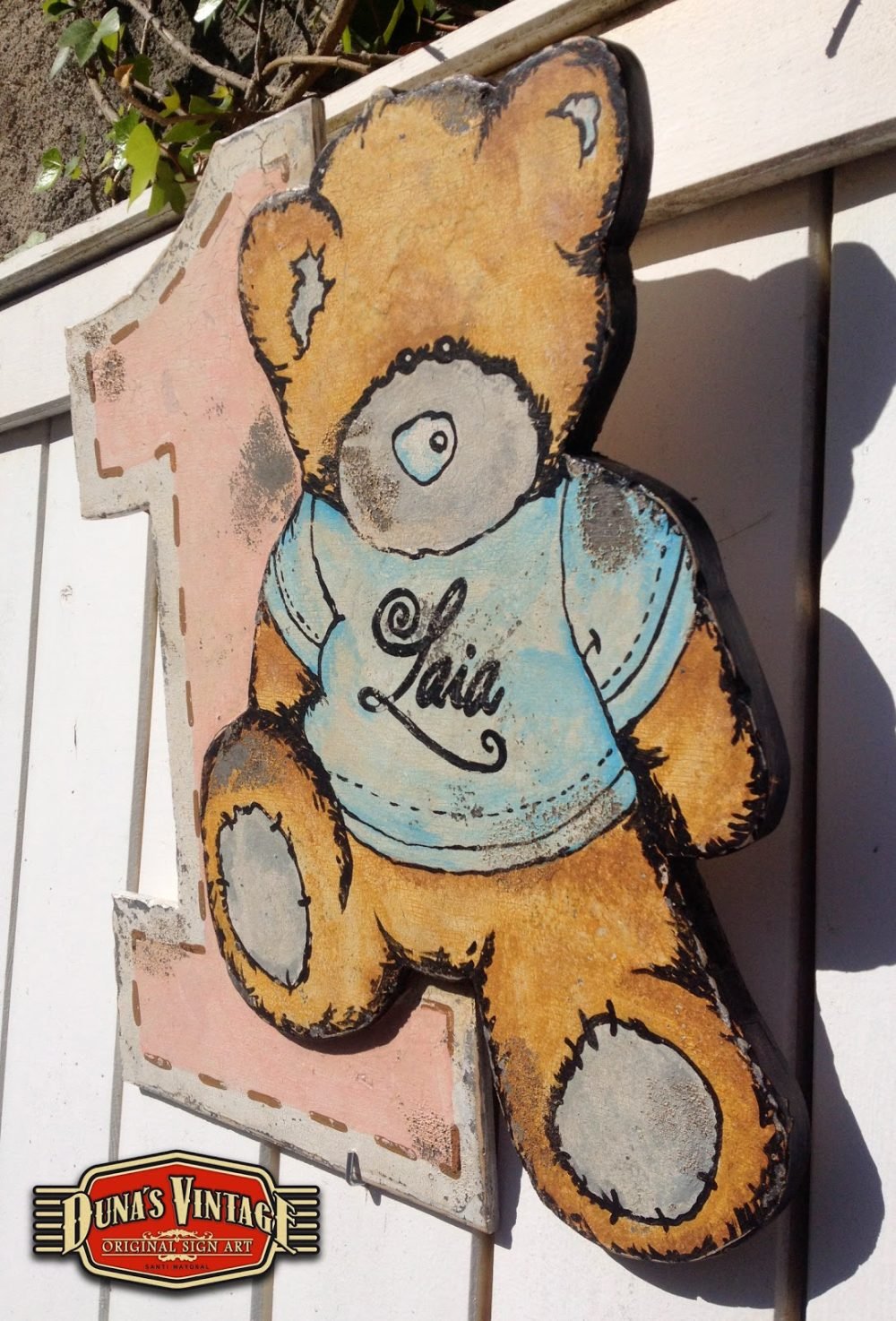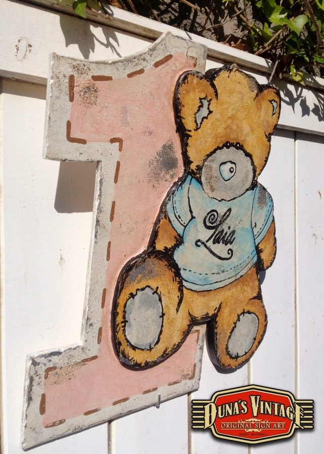Este trabajo es para la pequeña de la familia, Laia a cumplido un año y Duna´s Vintage le a regalado un osito con el numero uno para que tenga un recuerdo de su primer año. El tamaño es de 465x521mm.