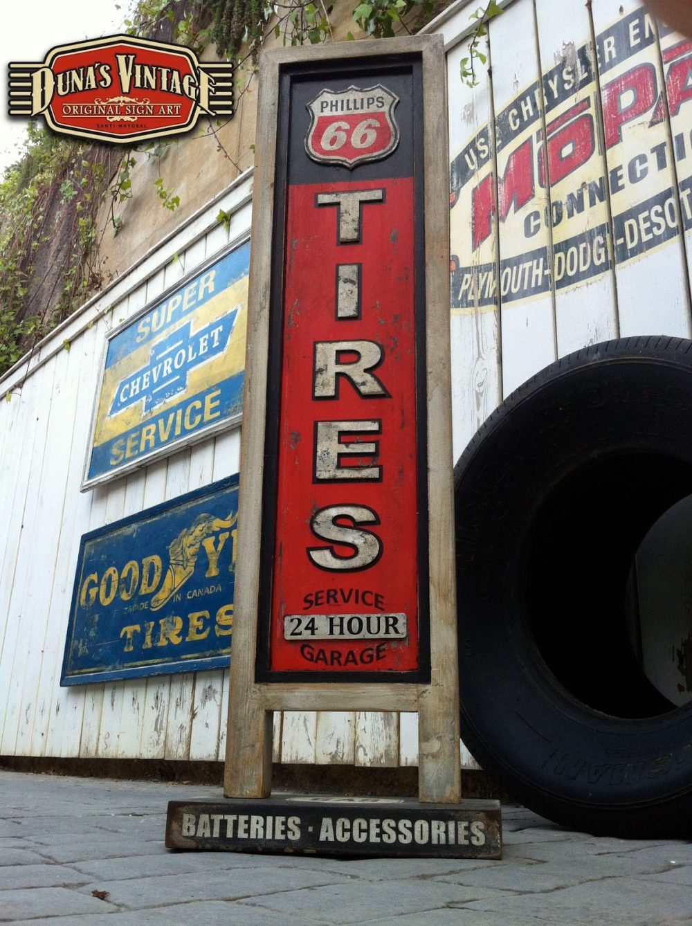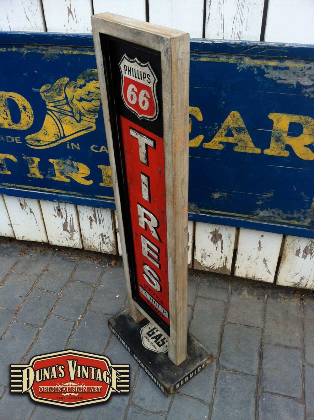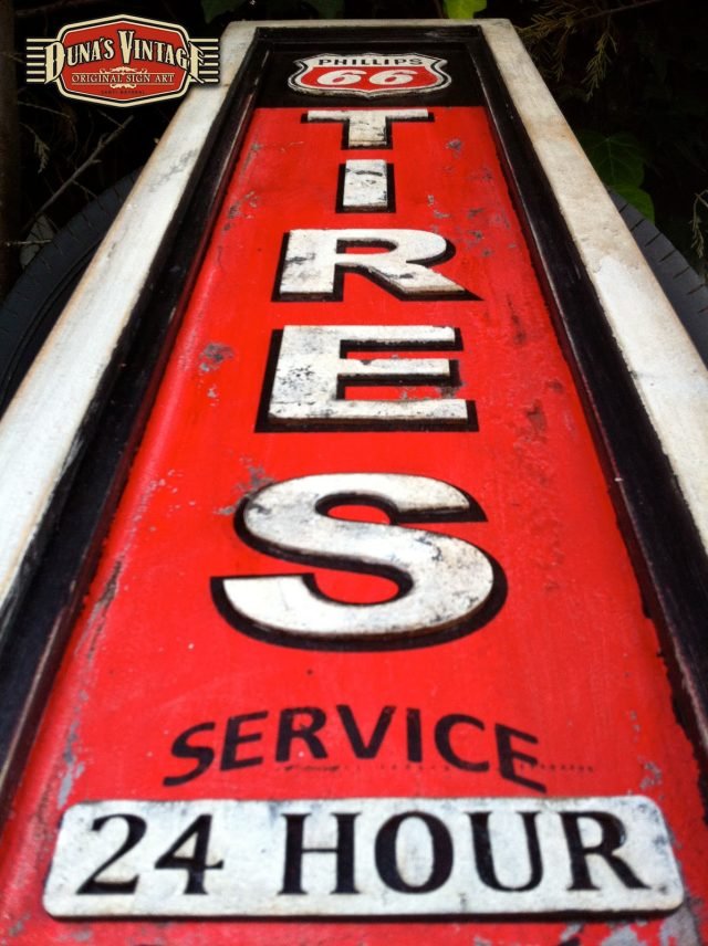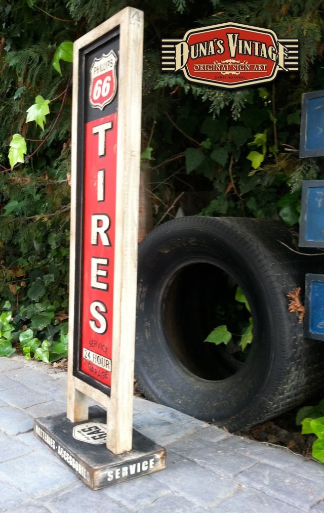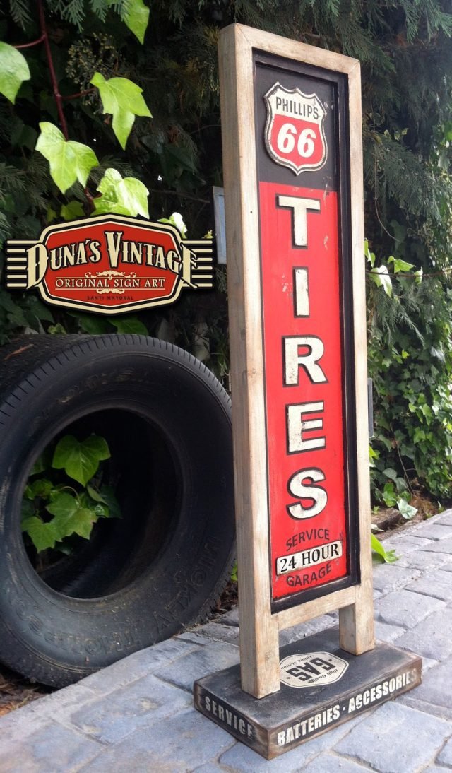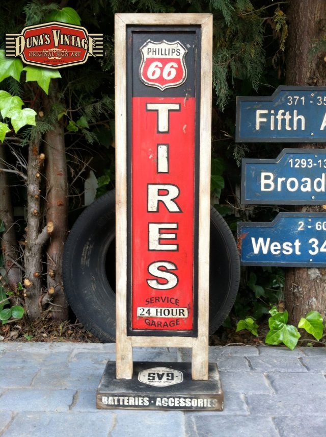 Cartel Phillips 66 Tires tamaño 1040x340mm, también se puede hacer personalizado con otras marcas o tamaño ideal para decorar el garaje de casa.
