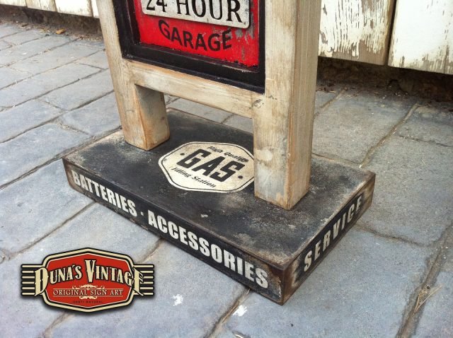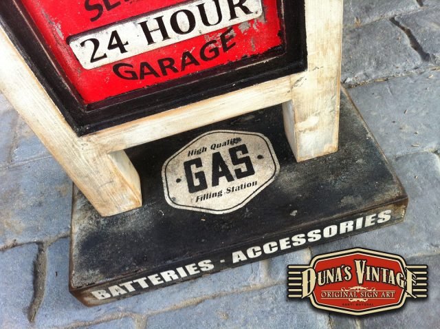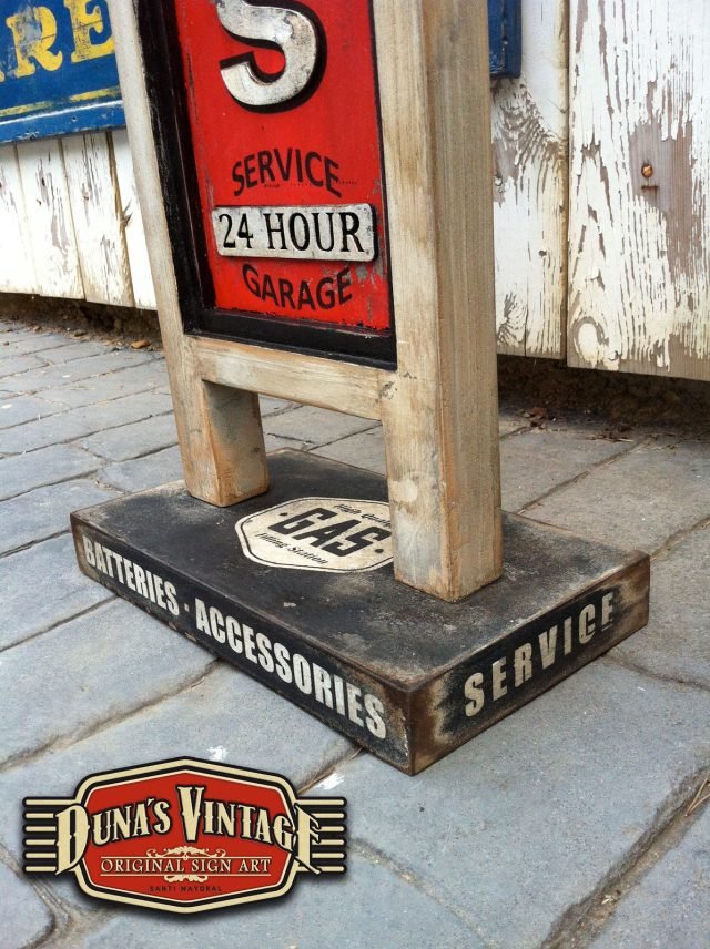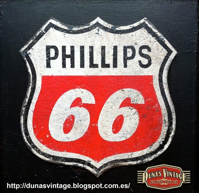Duna´s Vintage os presenta el típico cartel que encontrábamos en las gasolineras de Estados Unidos en los años 50´ este cartelel de la marca Phillips 66 pintado a dos caras con una peana que se puede desmontar para su envió.