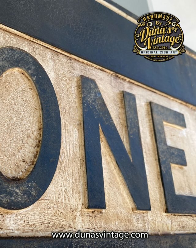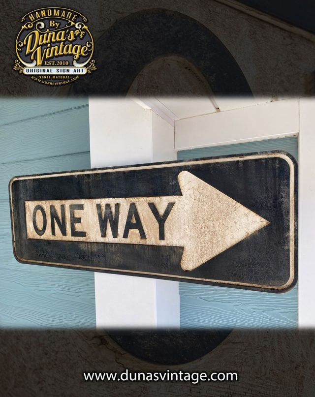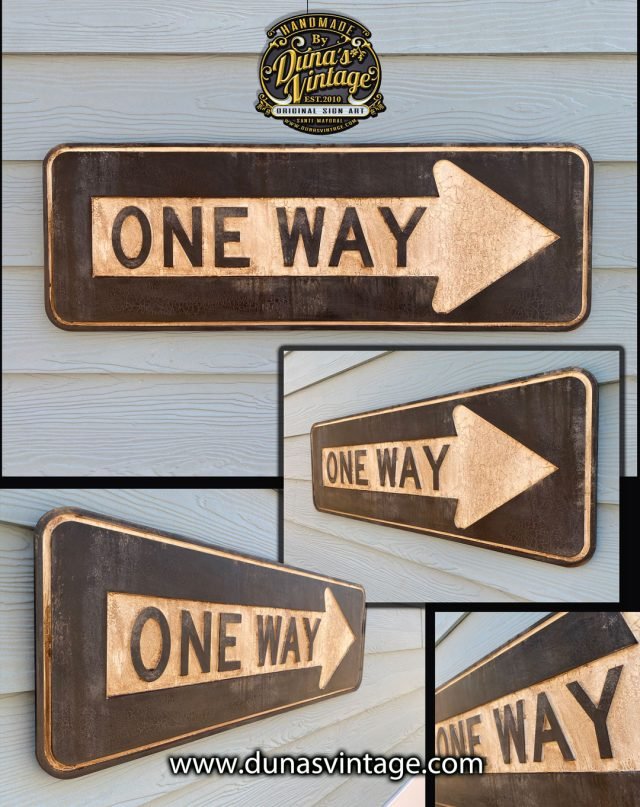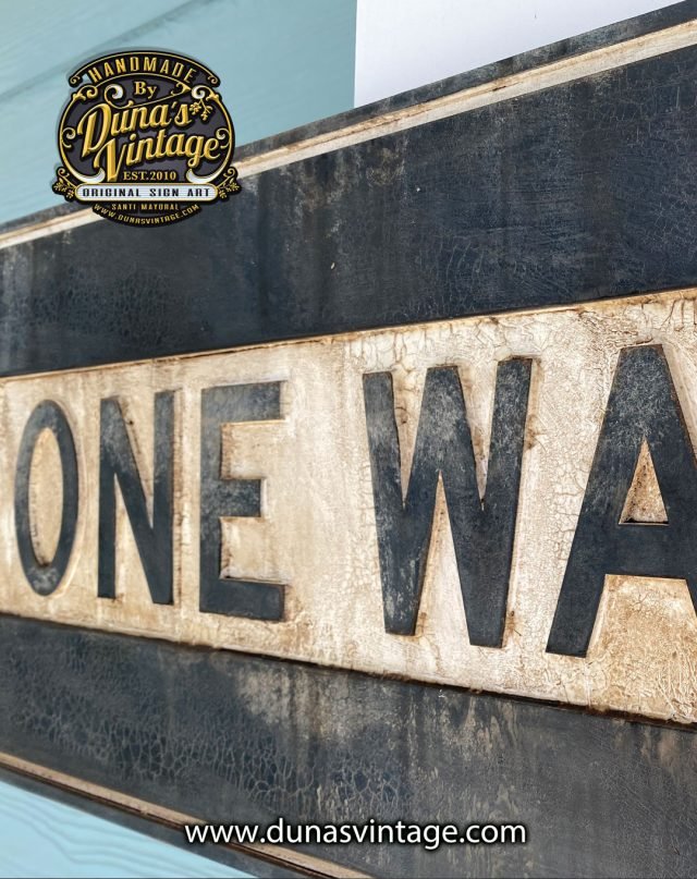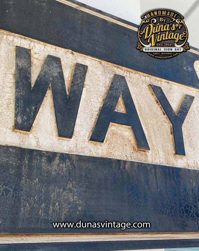 Réplica en madera con relieve de la placa más vista en U.S.A, ONE WAY tamaño 85x30cm con un toque de envejecido para darle un toque más auténtico, en venta en la web.