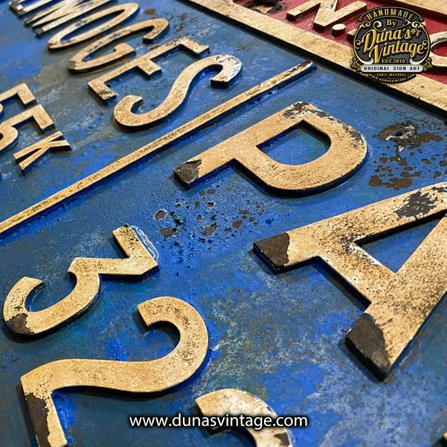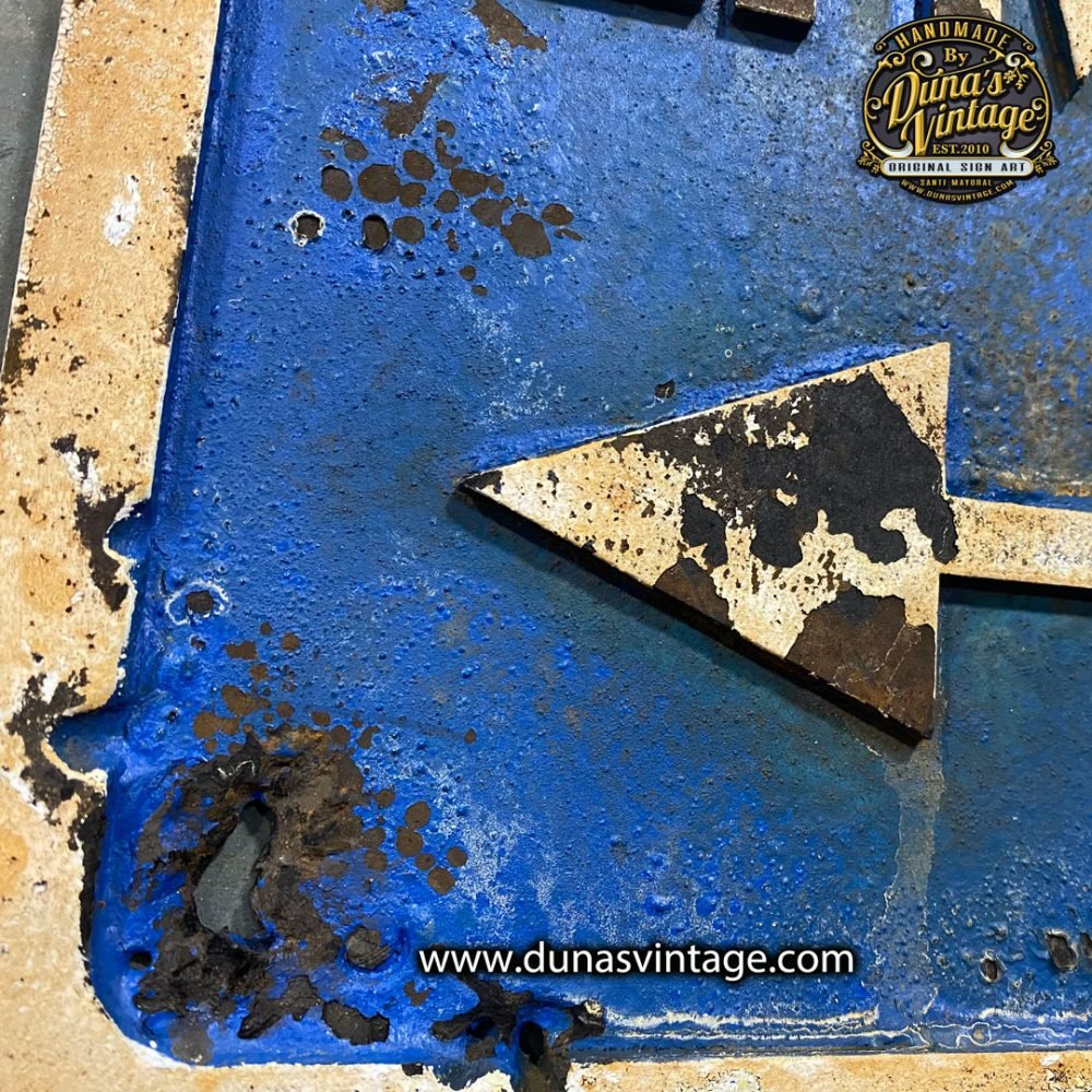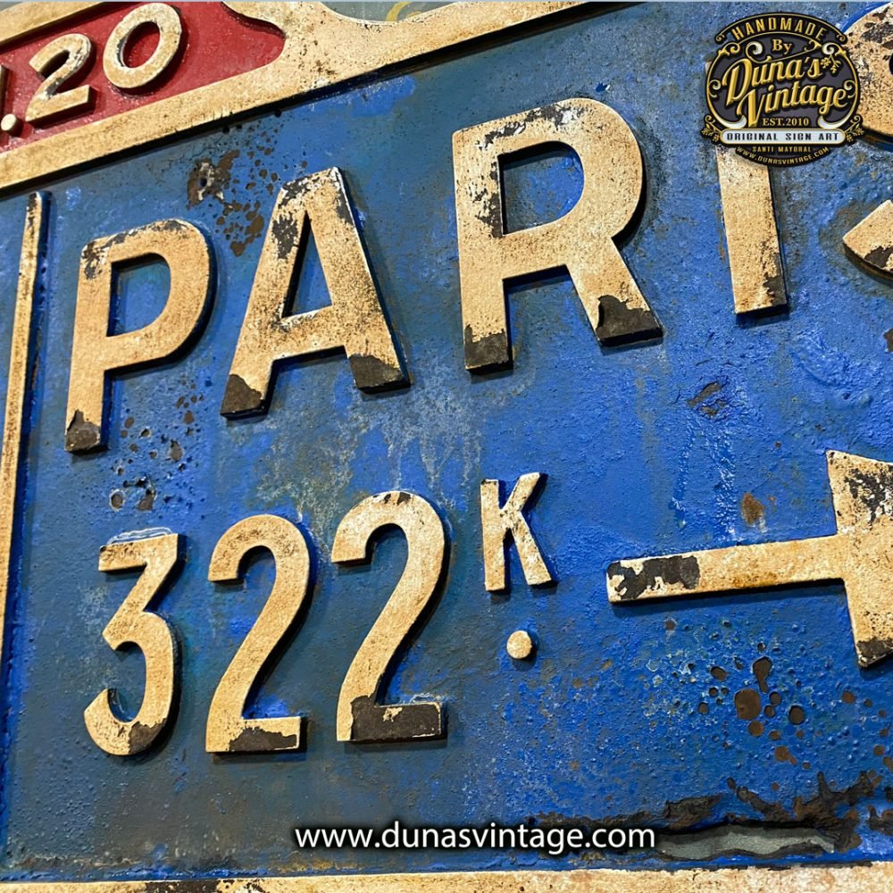 Nos cambiamos de localización dejamos los U.S.A. y nos vamos a Europa concretamente a Paris, vi esta placa y me gusto y aquí la tenemos, está fabricada en DM de 4mm con relieve y efecto oxidado y corrosivo, el acabado es espectacular, sobre un trozo de madera hemos conseguido un efecto de metal oxidado y muy deteriorado por el tiempo. Si quieres aprender estas técnicas tienen ahora una oferta por 66€ los cuatro cursos online, aprovéchala porque la semana que viene se termina la oferta y los cursos volverán a su precio de 99€ por curso, más información en www.hacercartelesvintage.com.