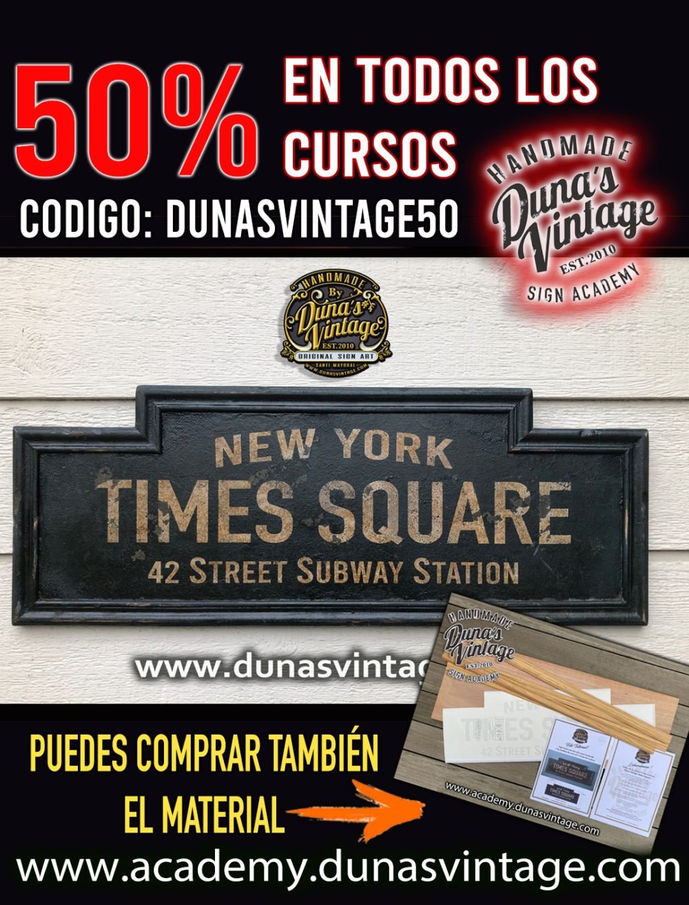 Hasta final de año podrás tener el descuento del 50% en todos los cursos de Duna´s Vintage Academy, si quieres estas fiestas hacer un regalo original hora puedes el curso no caduca lo podrá ver cuando quiera sin límite de tiempo.