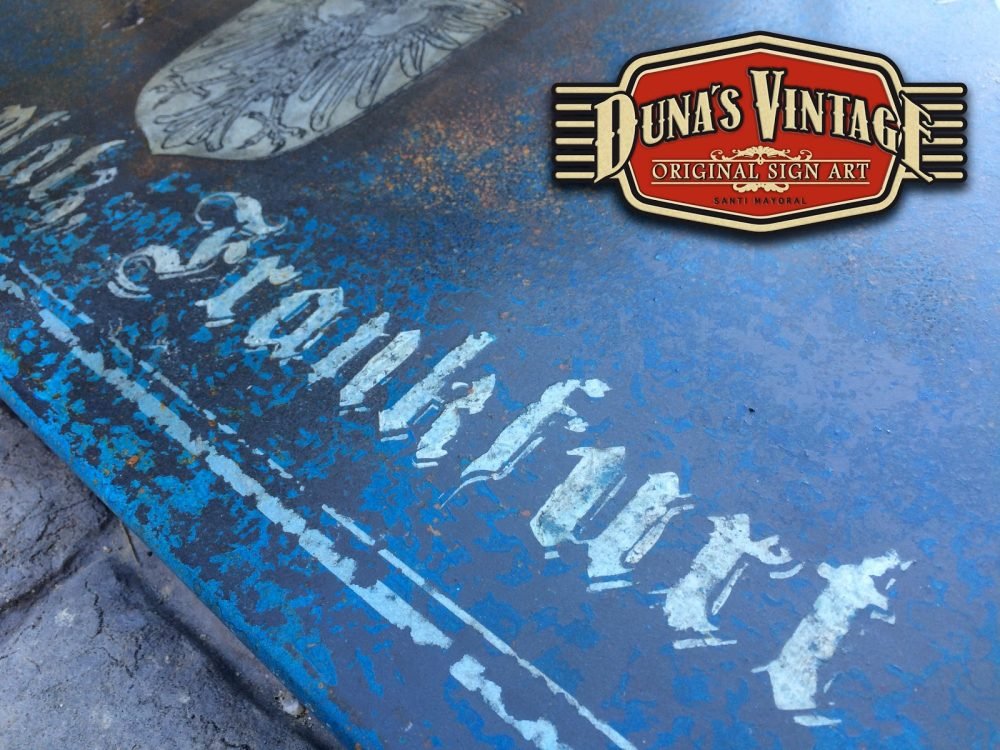 Réplica Cartel Metálico Frankfurter Wertpapierbörse 1874, tamaño 800x400mm fabricado en metal de 2mm de grueso, este cartel es una replica de los carteles que en su época se utilizaban. Encargo para la República Checa, Duna´s Vintage.