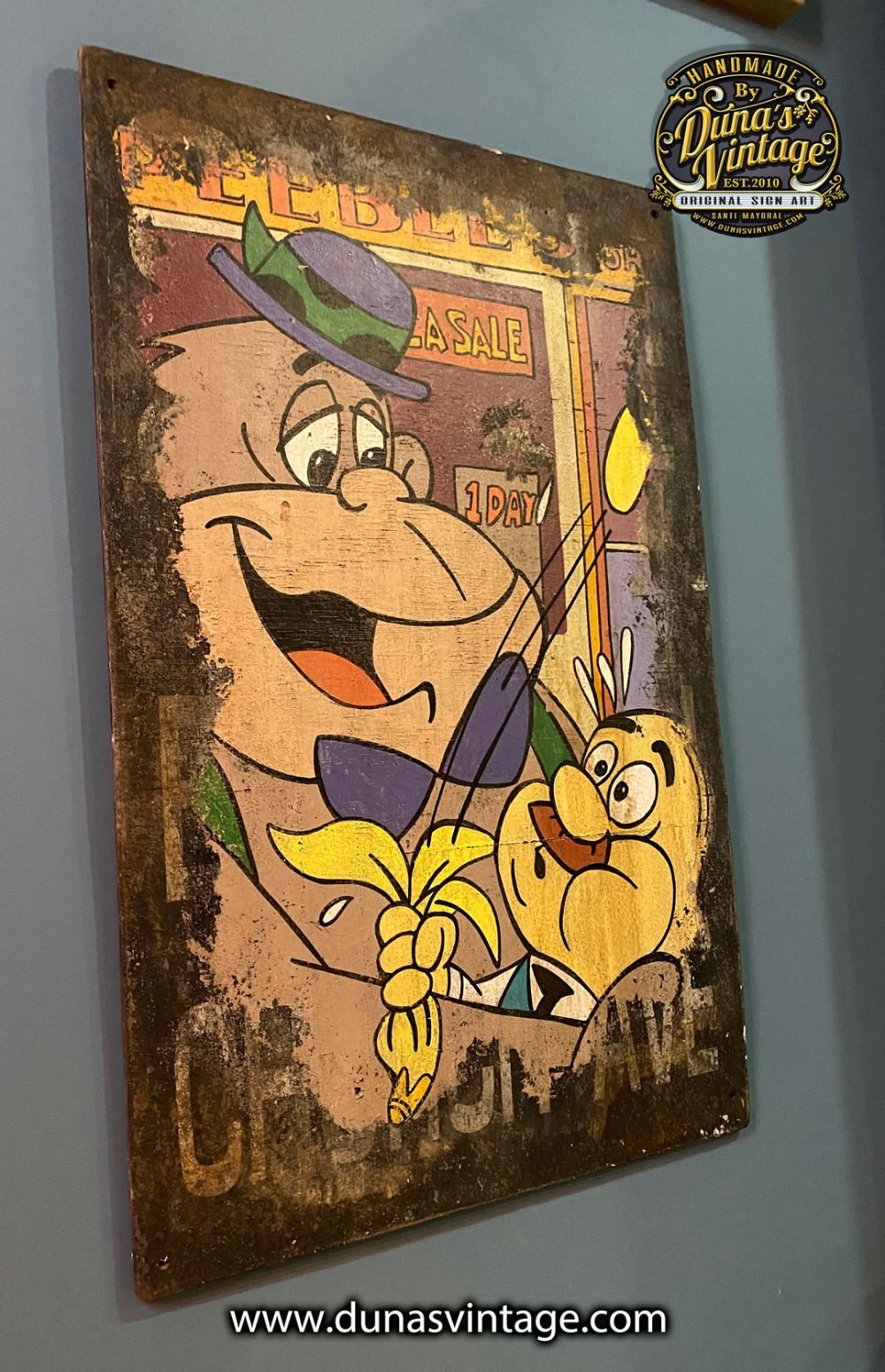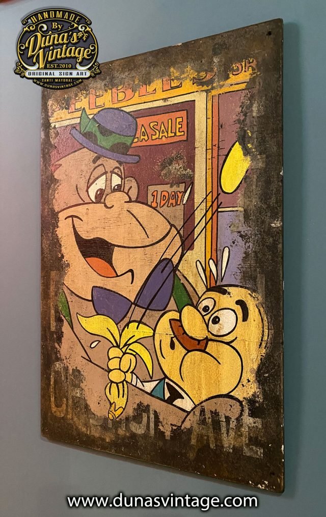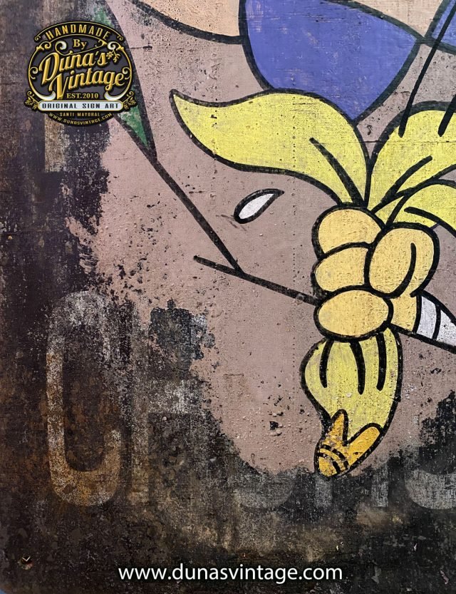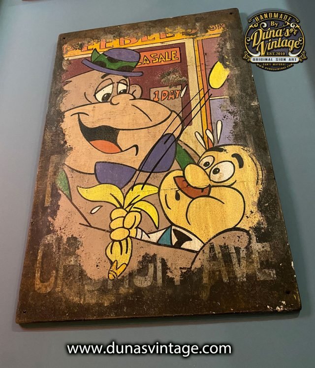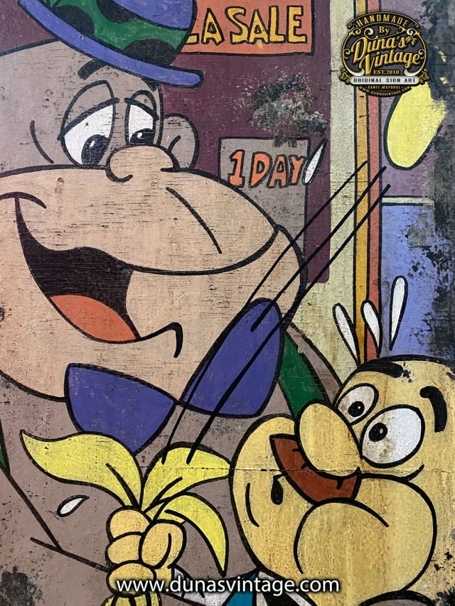 Cartel pintado a mano sobre madera de Maguila Gorilla. Es el dibujo animado de un gorila creado por los estudios de animación Hanna-Barbera. La serie de sus aventuras fue emitida por las emisoras sindicadas de la Televisión Estadounidense el 14 de enero de 1964, dentro del programa infantil titulado el Show de Maguila Gorila. tamaño del cartel 77x50cm pieza unica pintada sobre placa del Metro New York.
