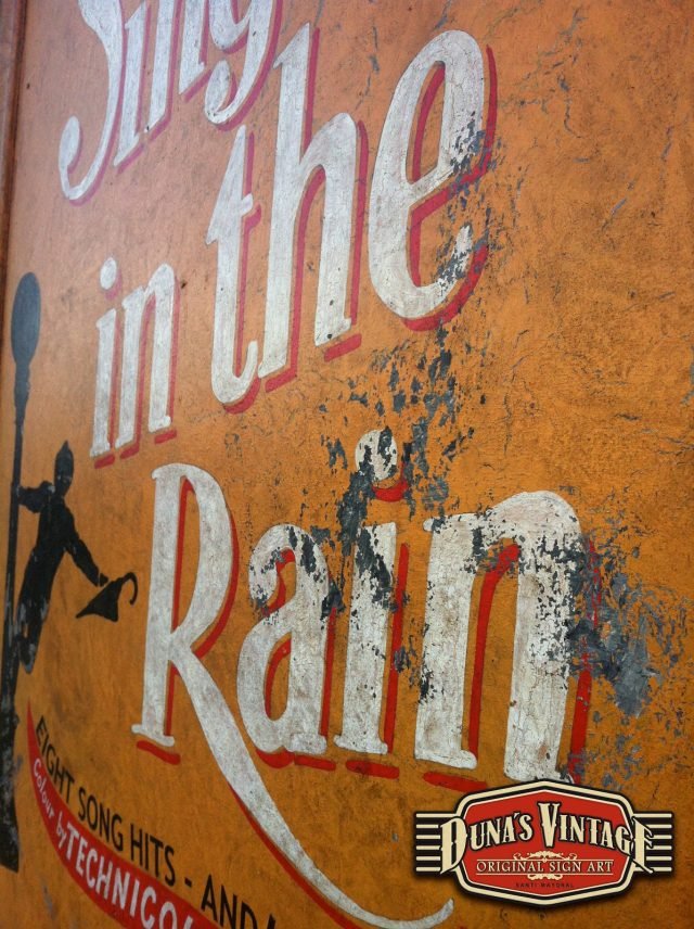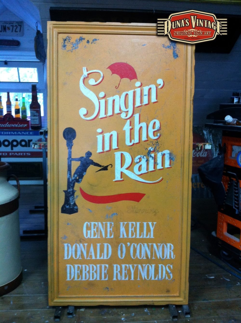 Replica del cartel de Singin´ in the Rain película musical de Hollywood, estrenada en 1952, tamaño 1220x650mm, este cartel esta tratado con el efecto que Duna´s Vintage emplea en sus carteles.
