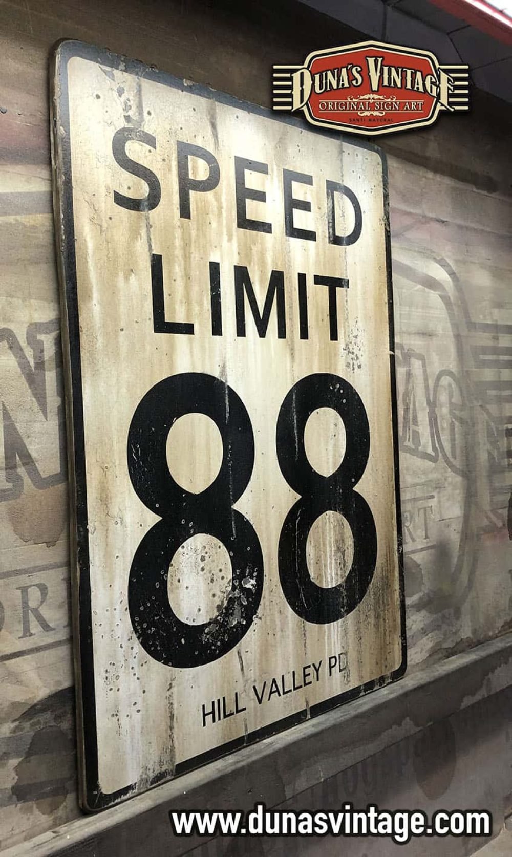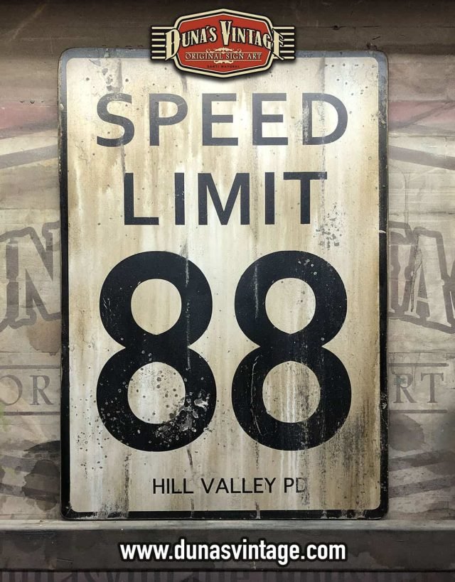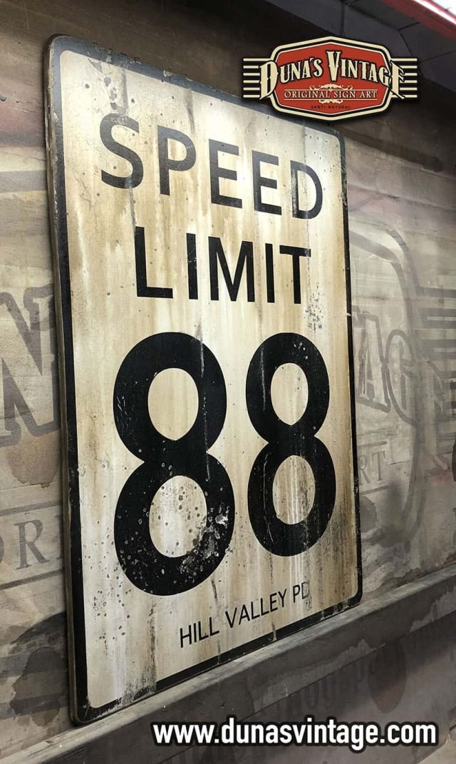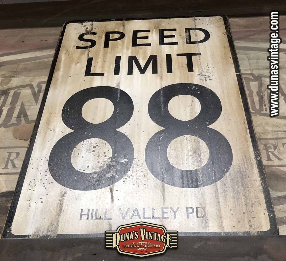 Cartel de Madera SPEED LIMIT 88 BACK TO THE FUTURE, Duna´s Vintage tamaño 800x540mm pintado a mano sobre contrachapado de madera y efecto Vintage. For Sale 125€,