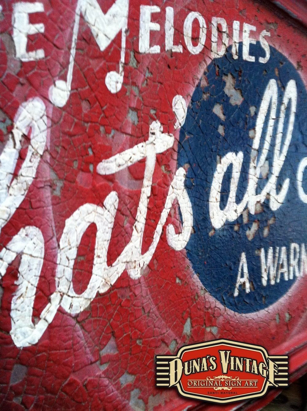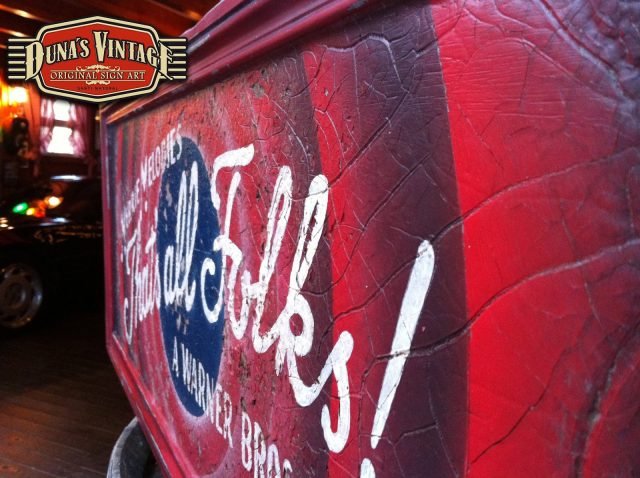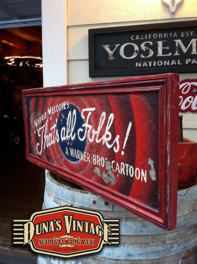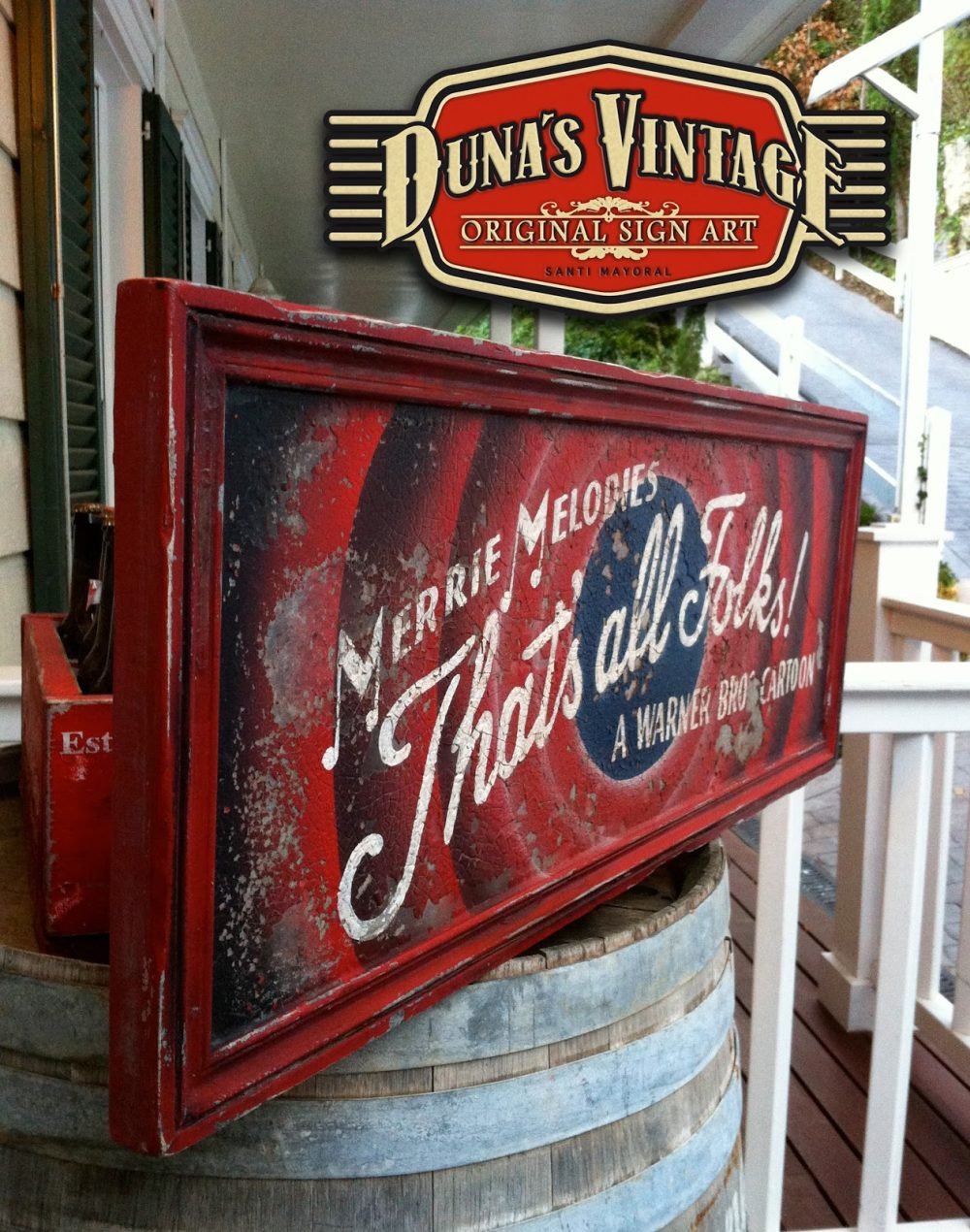 Cartel «That´s all Folks! Duna´s Vintage».Tamaño 850x330mm. Este cartel esta tratado con el efecto Retro que Duna´s Vintage emplea en sus carteles pintados a mano. (Hay algunos carteles que se han vendido pero se pueden hacer otros iguales o personalizados con el texto que se quiera).