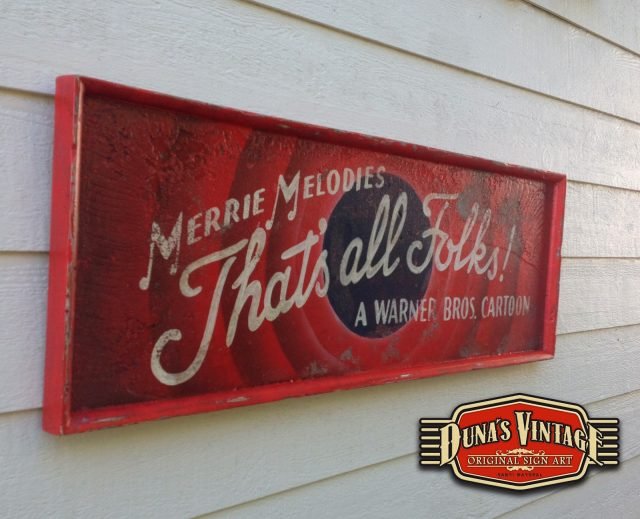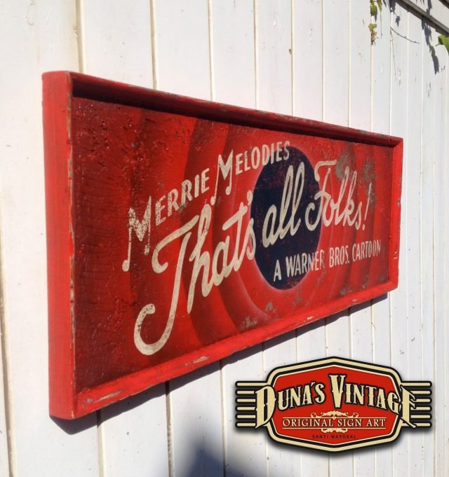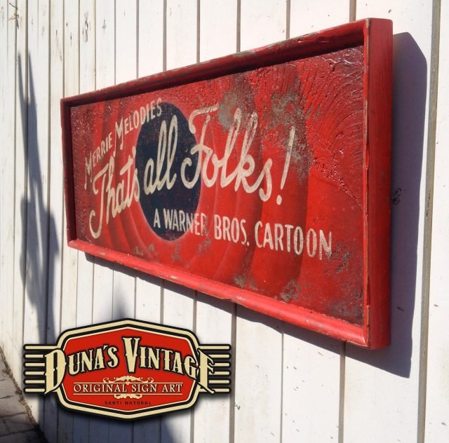 Cartel «That´s all Folks! Duna´s Vintage». Tamaño 1300x450mm. Este cartel esta tratado con el efecto Retro que Duna´s Vintage emplea en sus carteles pintados a mano. (Hay algunos carteles que se han vendido pero se pueden hacer otros iguales o personalizados con el texto que se quiera). Duna´s Vintage.