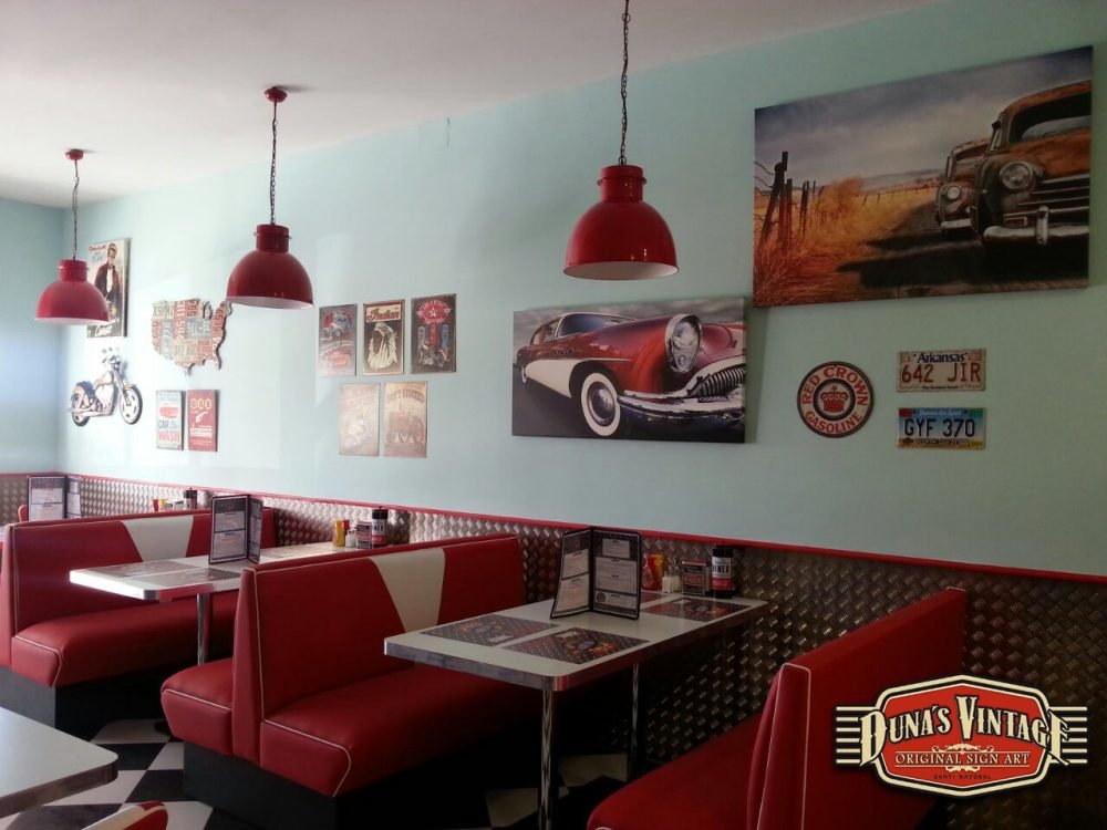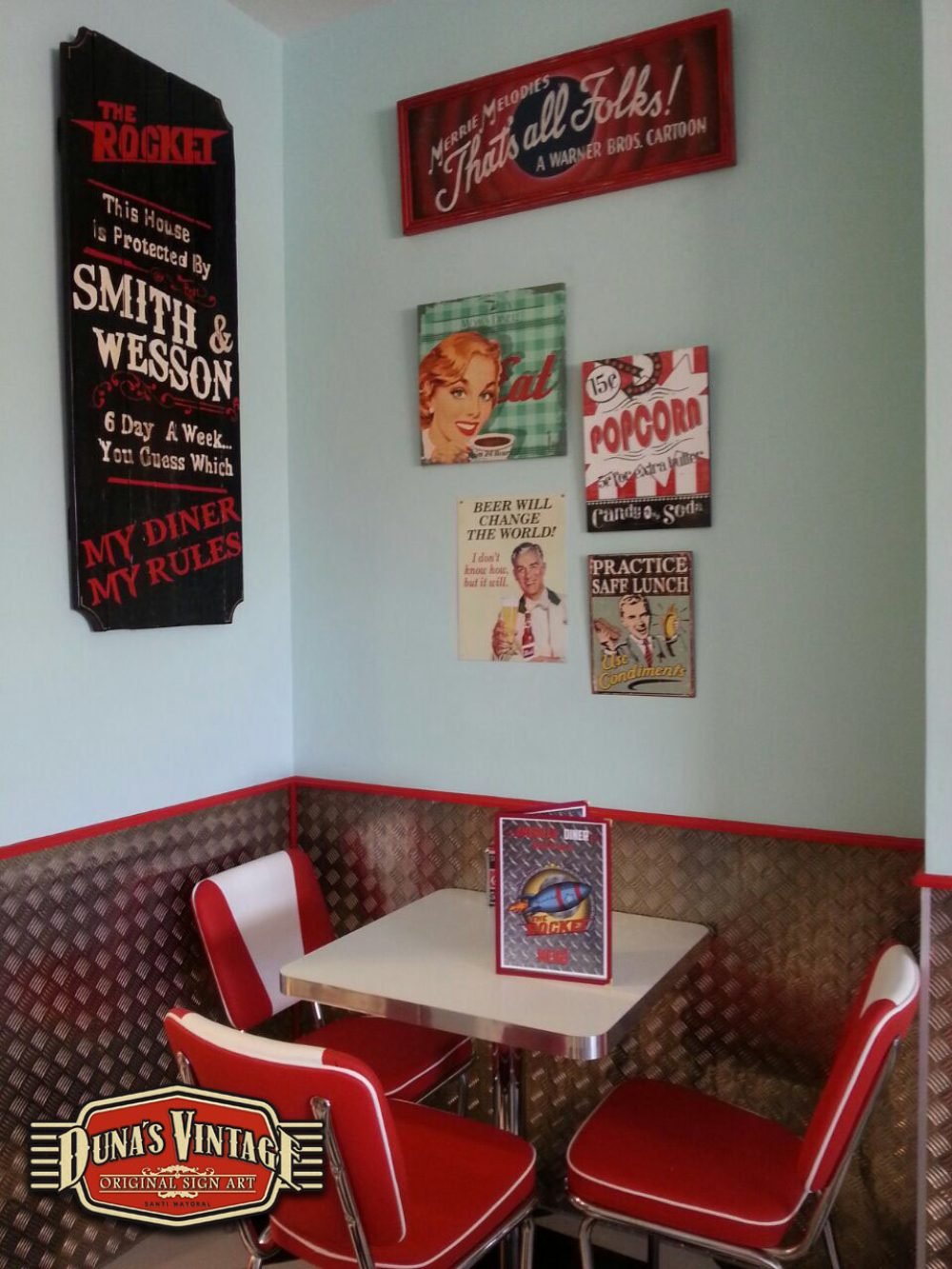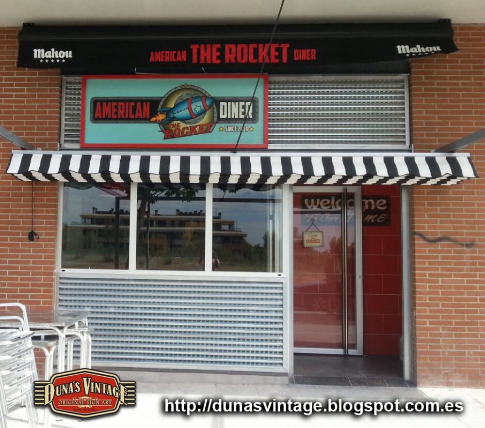 Se han colocado unas tachas a modo de remaches para darle un toque mas autentico al cartel. El local a quedado muy autentico os adjunto algunas fotos de fachada y el interior. Duna´s Vintage.