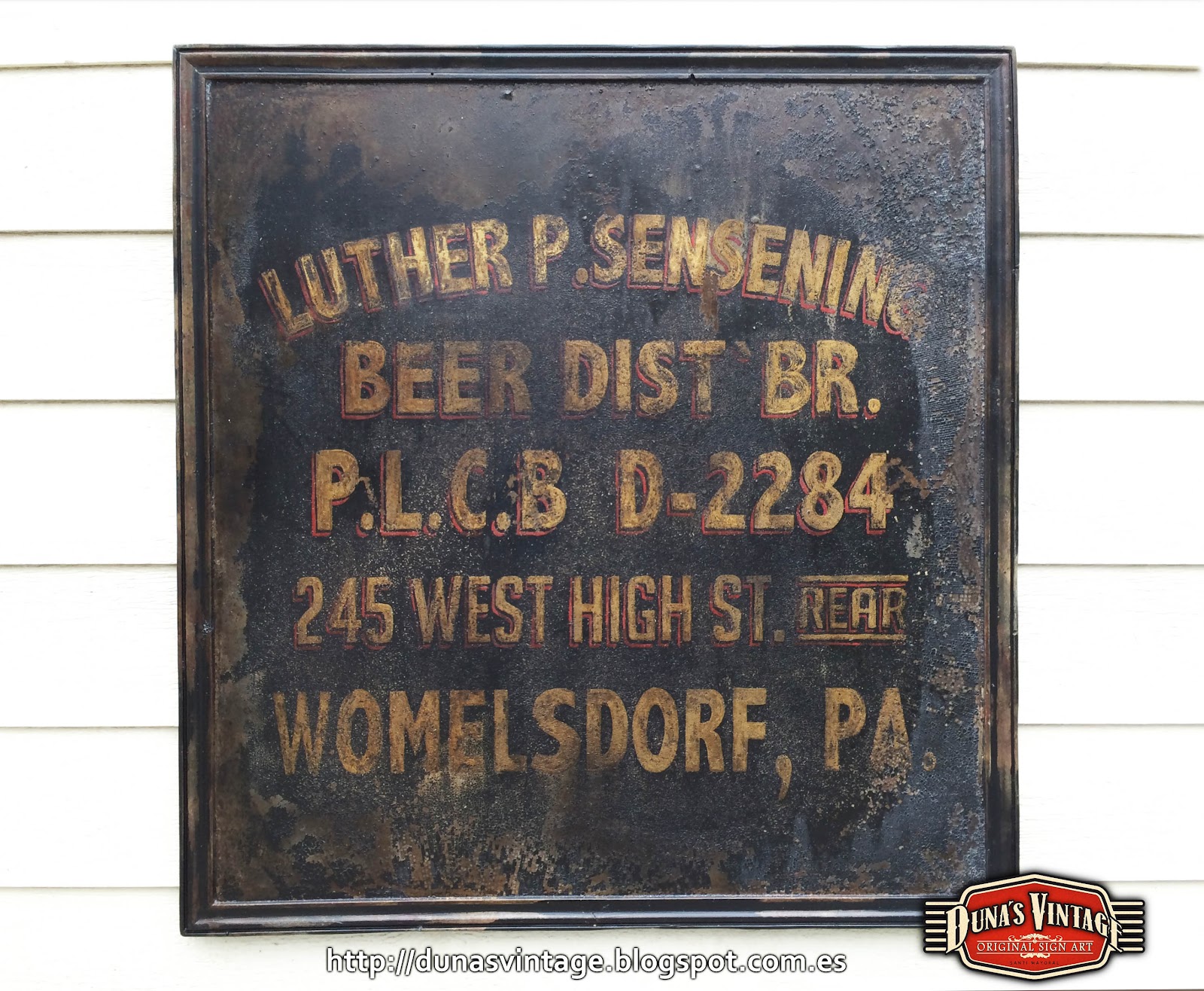 Réplica cartel LUTHER P.SENSENING BEER, este cartel esta trabajado en madera con el efecto que Duna´s Vintage emplea en sus carteles, tamaño 1050x1000mm. For Sale 400€.